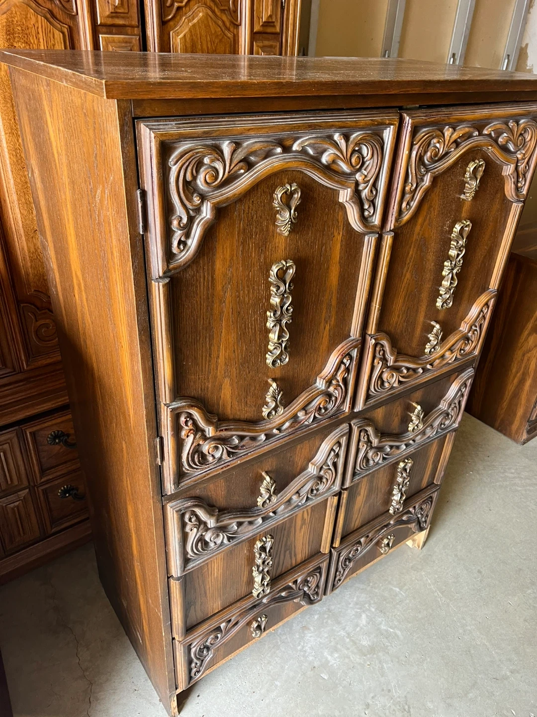 Free delivery Vintage Wooden Dresser with Ornate Detailing