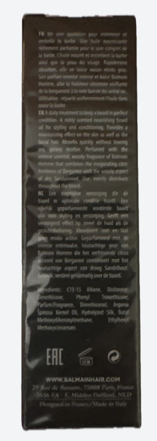 Giving away this new and sealed bottle of Balmain Paris beard oil. The bottle contains 1 fl oz (30ml) of oil to moisturize and shape his facial hair. It's a daily treatment to keep a beard in perfect condition. It absorbs quickly without leaving any greasy residue. Perfumed with the intense oriental, woody fragrance of Balmain Homme that combines the invigorating citrus freshness of Bergamot with the woody aspect of dry Sandalwood.
