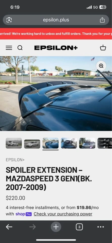 Epsilon+ Spoiler Extension MazdaSpeed 3 Gen 1 (2007-2009)