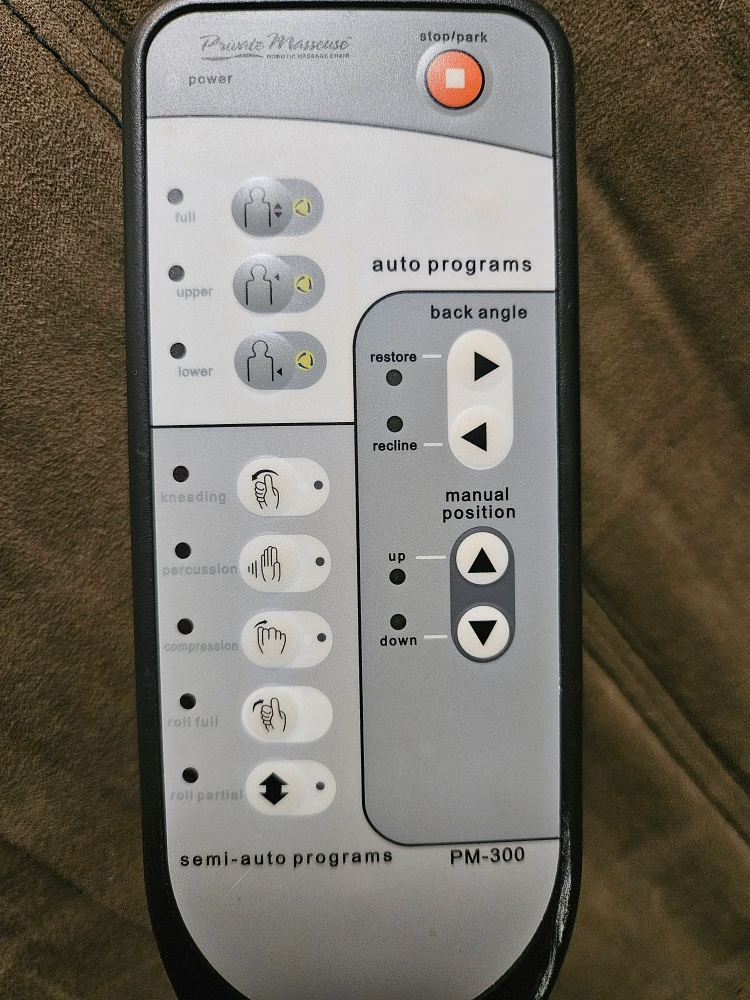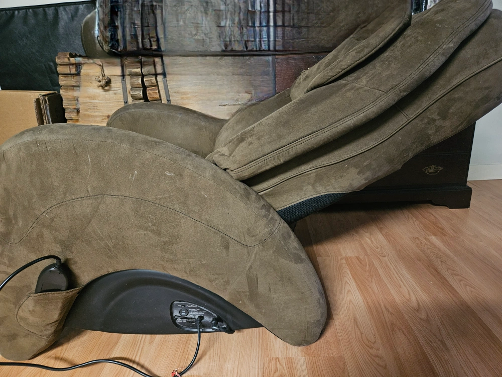 Selling a Private Masseuse massage chair. It has a brown suede-like material.