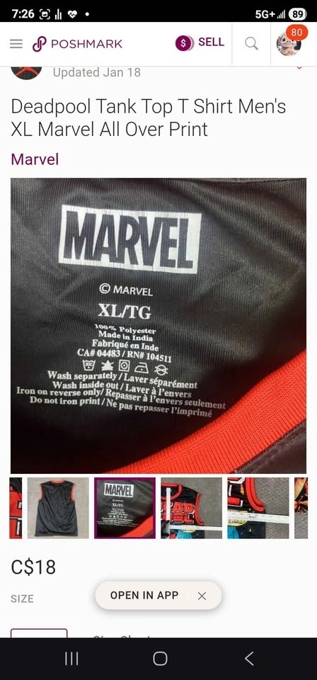 1) Marvel Deadpool tank top with all-over comic book print. Size XL. 100% polyester. Worn once.