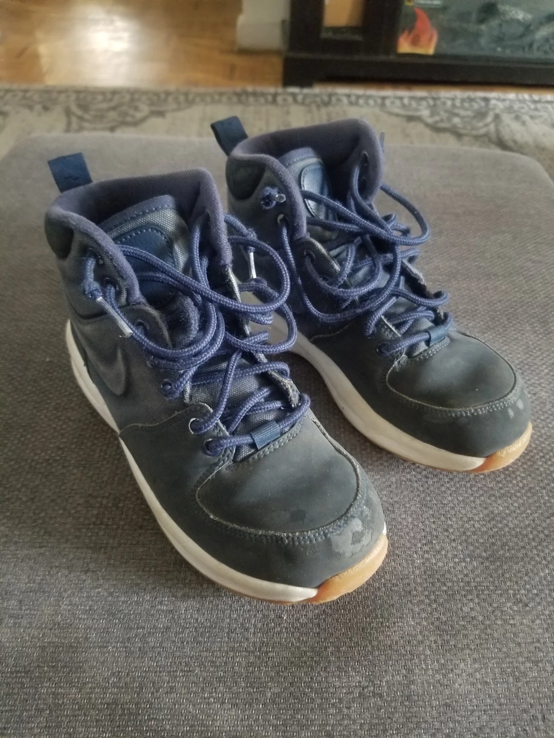 These are Nike youth sneaker boots in a size 3.5Y. They're made in Vietnam with a durable rubber sole. These boots are perfect for kids needing a sturdy and stylish shoe for everyday wear. Asking $10
