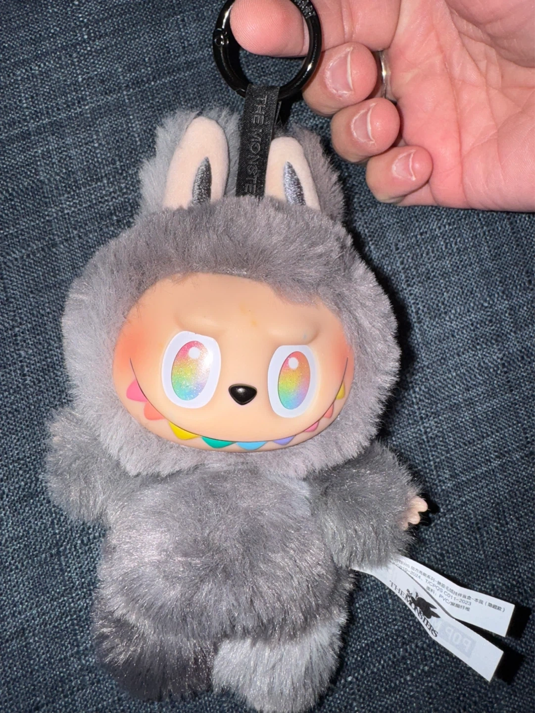 This is a cute fuzzy keychain featuring a unique art style. It's made with PVC and polyester fiber. The keychain has a metal ring for easy attachment. Perfect for adding a bit of personality to your bag or keys! This is the secret labubu. 100 percent authentic!!!! This is the secret yall!!