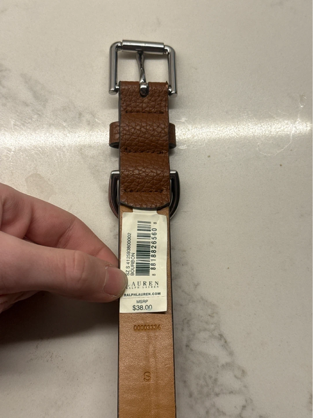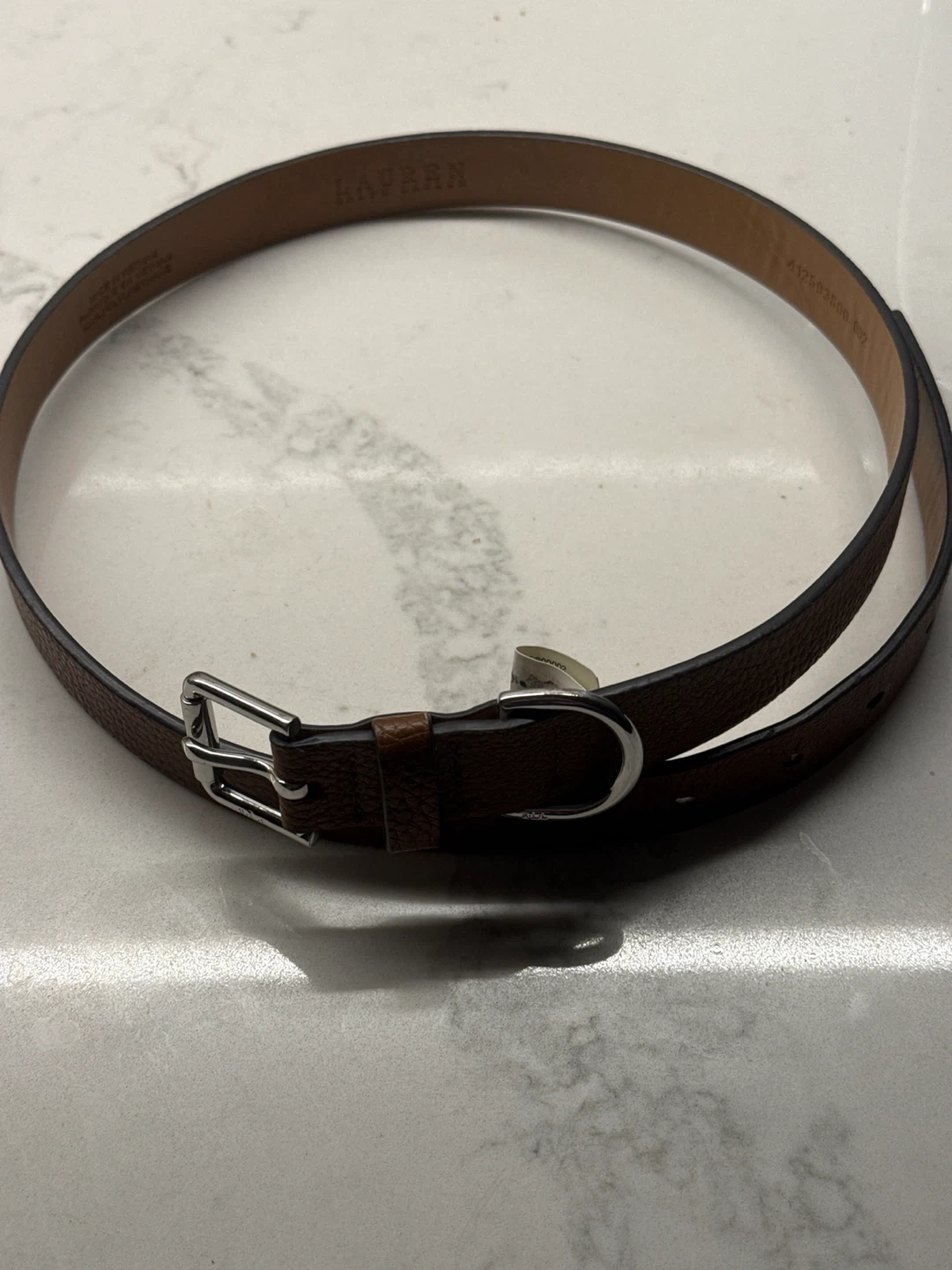 Brown pebbled leather belt by Lauren Ralph Lauren. Features a silver-tone buckle. Size S. Never used.