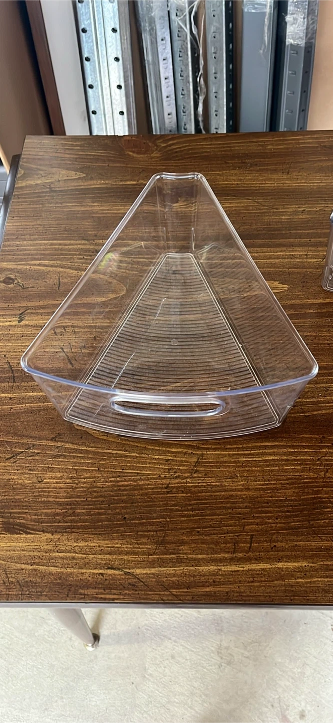 I'm selling a set of 6 clear plastic modular corner organizer. It's great for pantries, shelves, or countertops; especially lazy susan organization. They’re in excellent condition and ready for use!