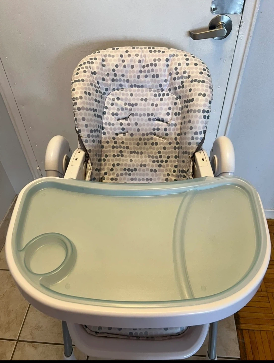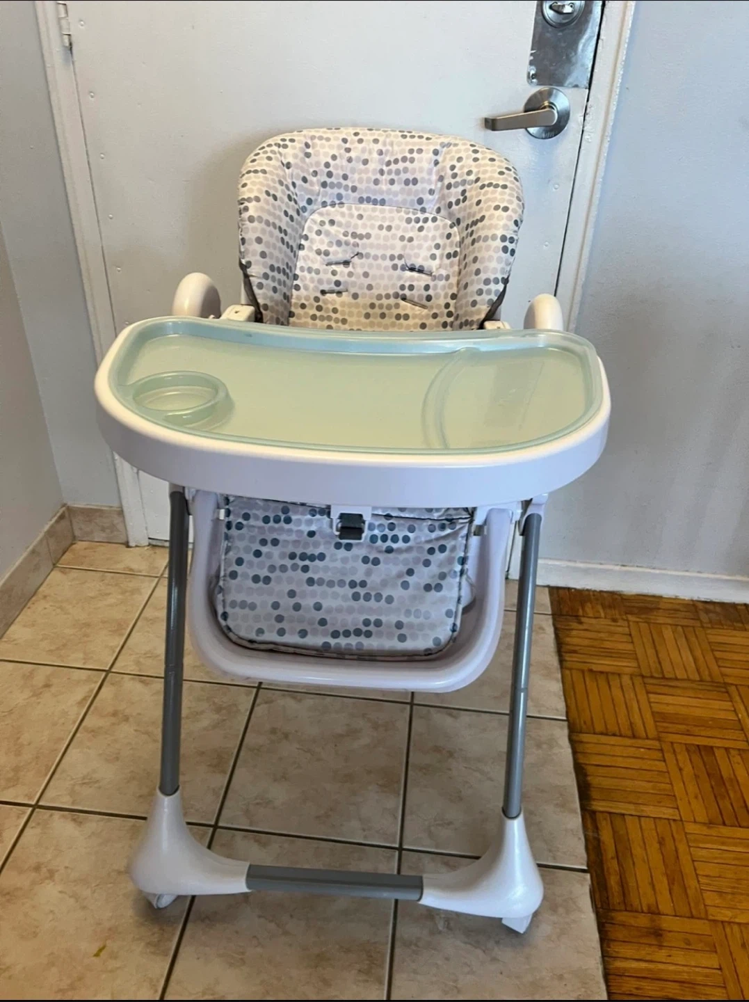 Selling an Ingenuity Trio 3-in-1 high chair. It's in great shape and ready for a new family! The chair features a cute polka dot pattern in shades of grey and white. Perfect for meal times and easy to clean