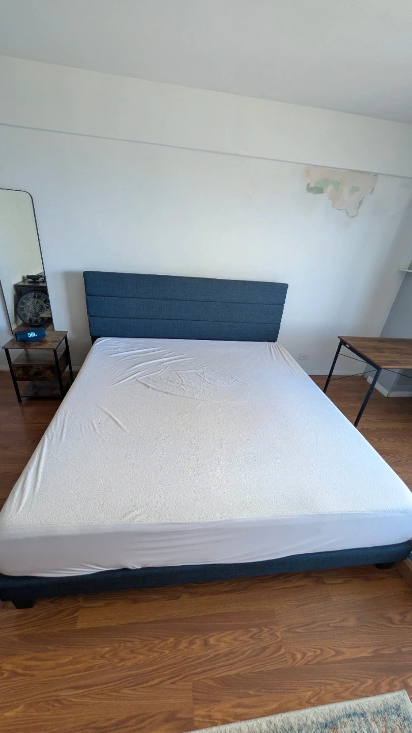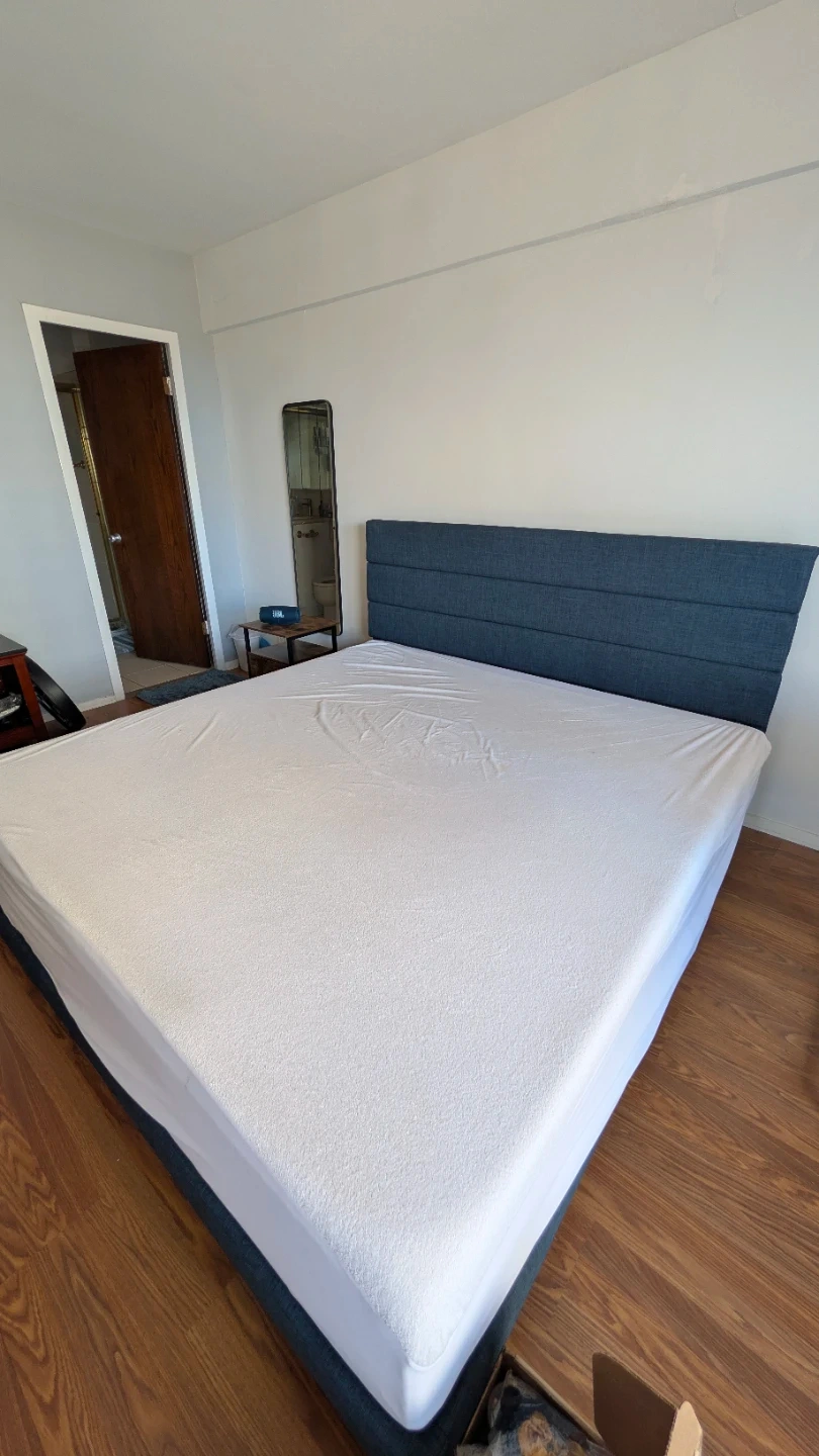 Bedframe is dismantled and the mattress is vacuum sealed and compressed for easy transportation. Comes with mattress protector sheet as well.