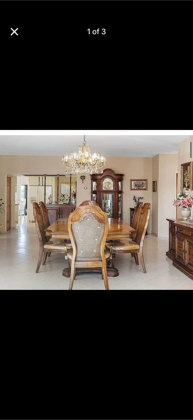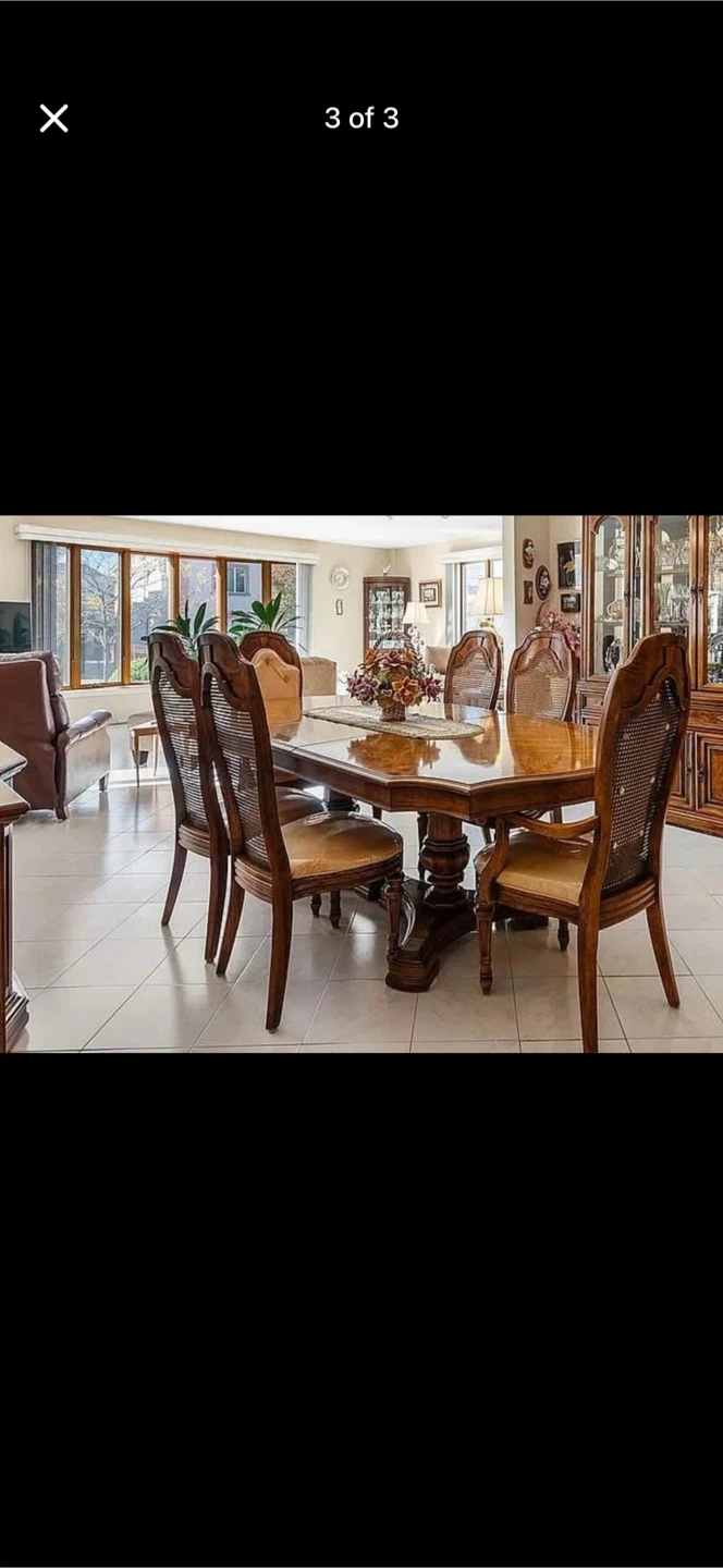 10Selling a beautiful 7-piece dining set with an extendable table. The set includes four side chairs and two chairs with arms. This set originally retailed for $2,500 But now I give for $1000 I need to move the state and its to little bigger for the truck.