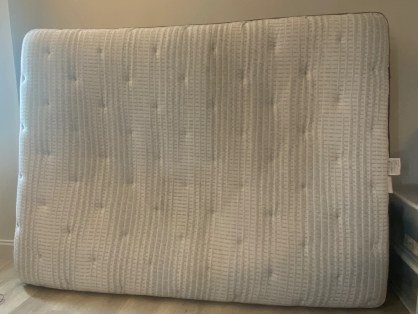Medium firm, like new condition. I used to travel frequently, so it’s barely used. Selling this one because I’m downsizing.