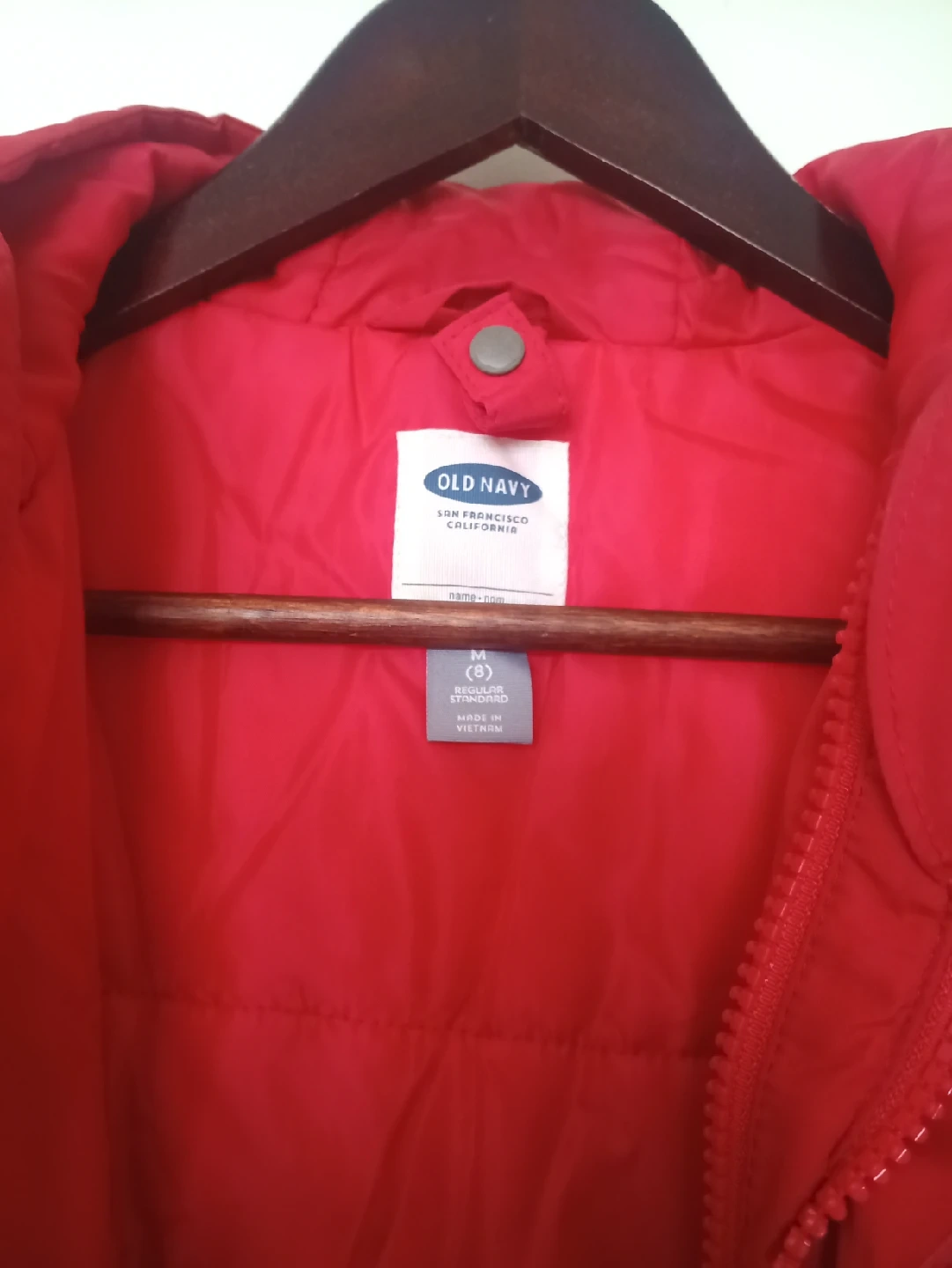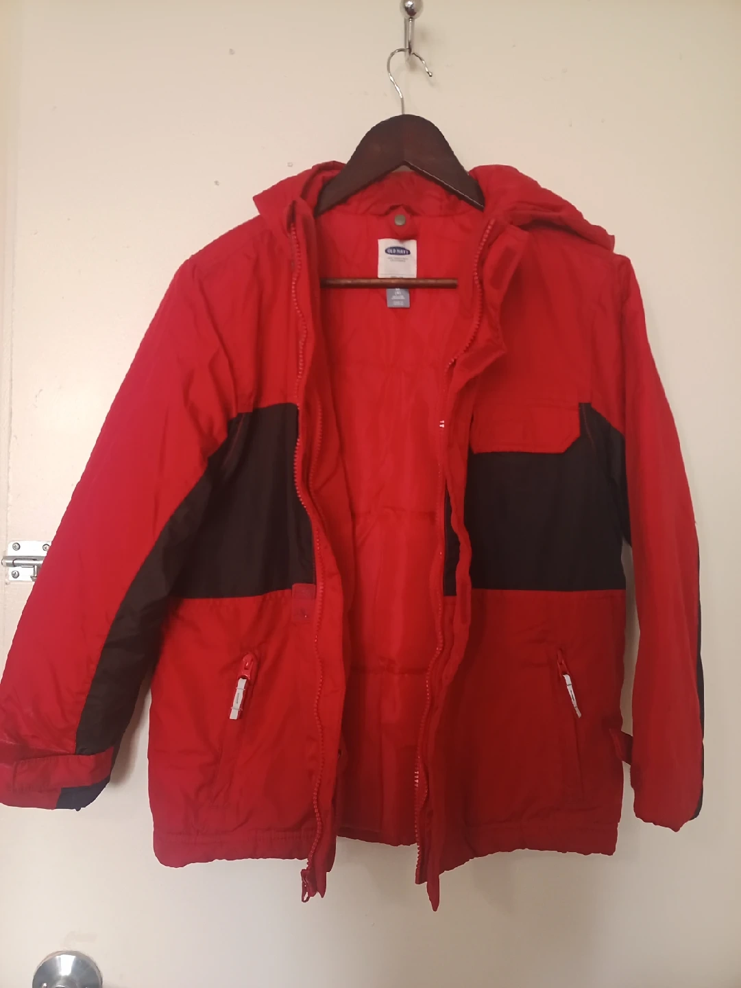 Selling a gently used Old Navy kids winter jacket in red and black. It's a size M (8) and perfect for keeping your little one warm during the colder months. It's in great condition and ready for a new home!