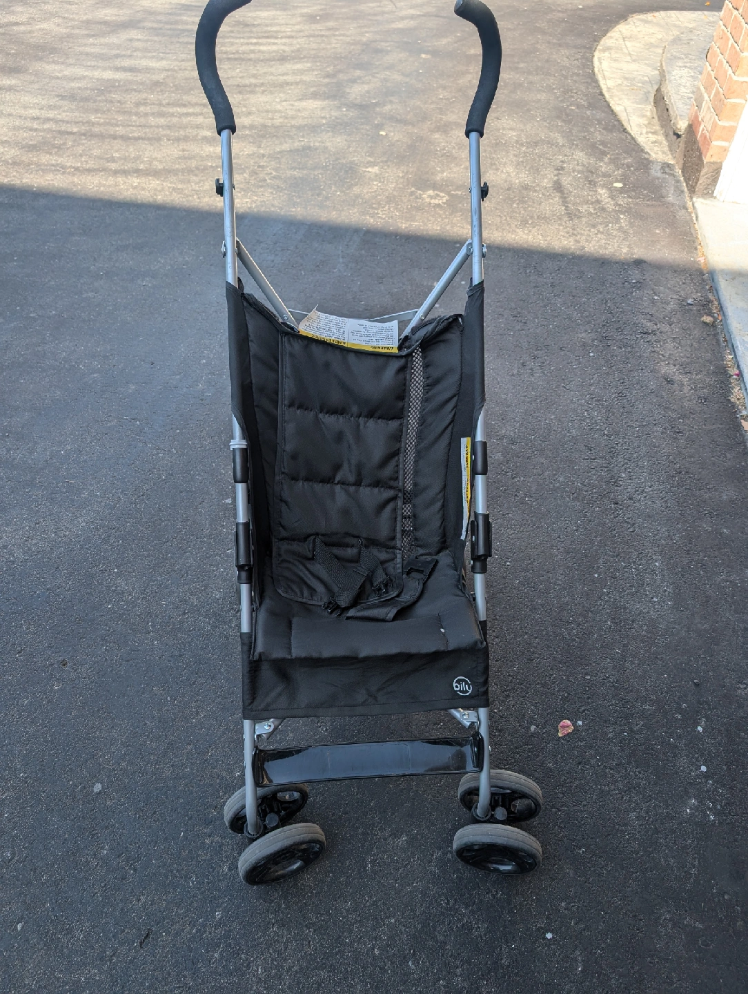 Selling a bily stroller in good condition. It's lightweight and easy to fold, perfect for travel or quick trips around town. The stroller features a compact design and a comfortable seat for your little one. It has a sturdy frame and smooth-rolling wheels for easy maneuverability