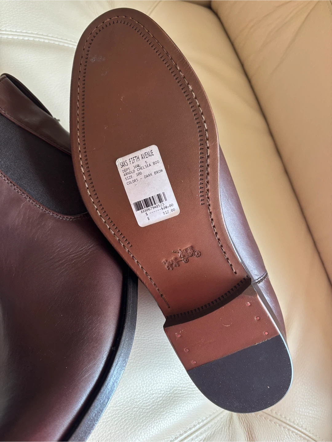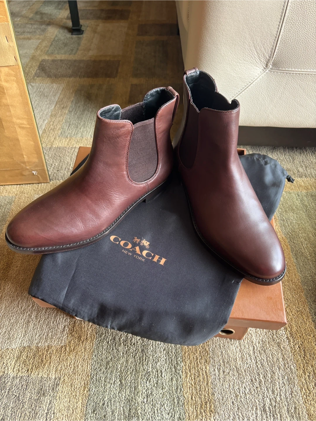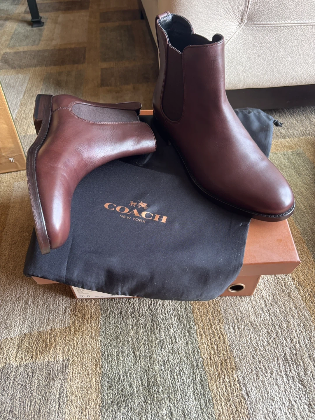 Selling a pair of men’s Coach all leather Gold Chelsea men’s boots in caramel brown. They are a size 10 D. Comes with the original box and dust bag! Never worn. Purchased on sale for $312.00. Originally $520.00.