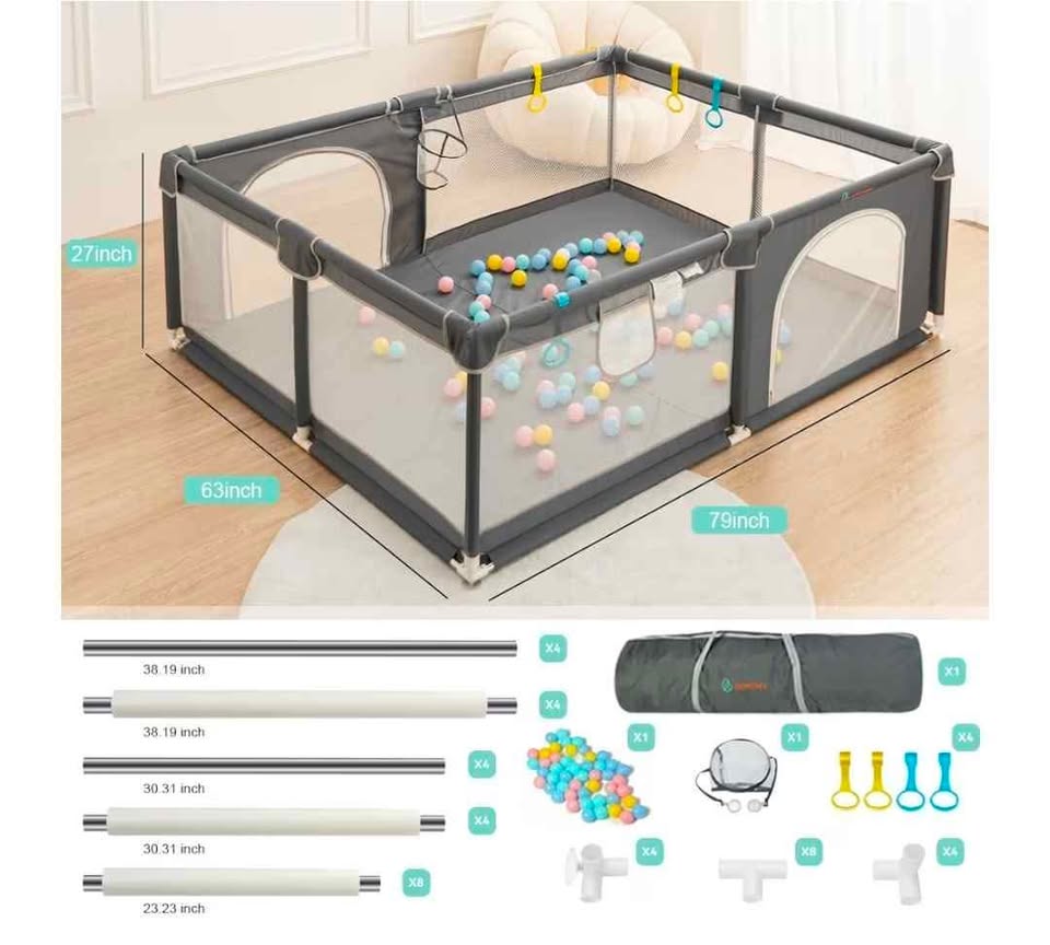 The height and size of the playpen fit babies from 0 to 6 years old. It's a space entirely for your baby, in which to place toys, books, and their things.
