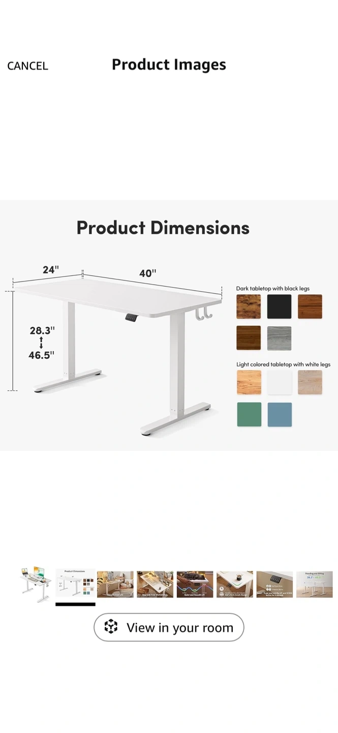 Selling a Height Adjustable Electric Standing Desk. It's white and measures 40 inches by 24 inches. Features a quiet and smooth lift to elevate your life and upgrade your workstation.