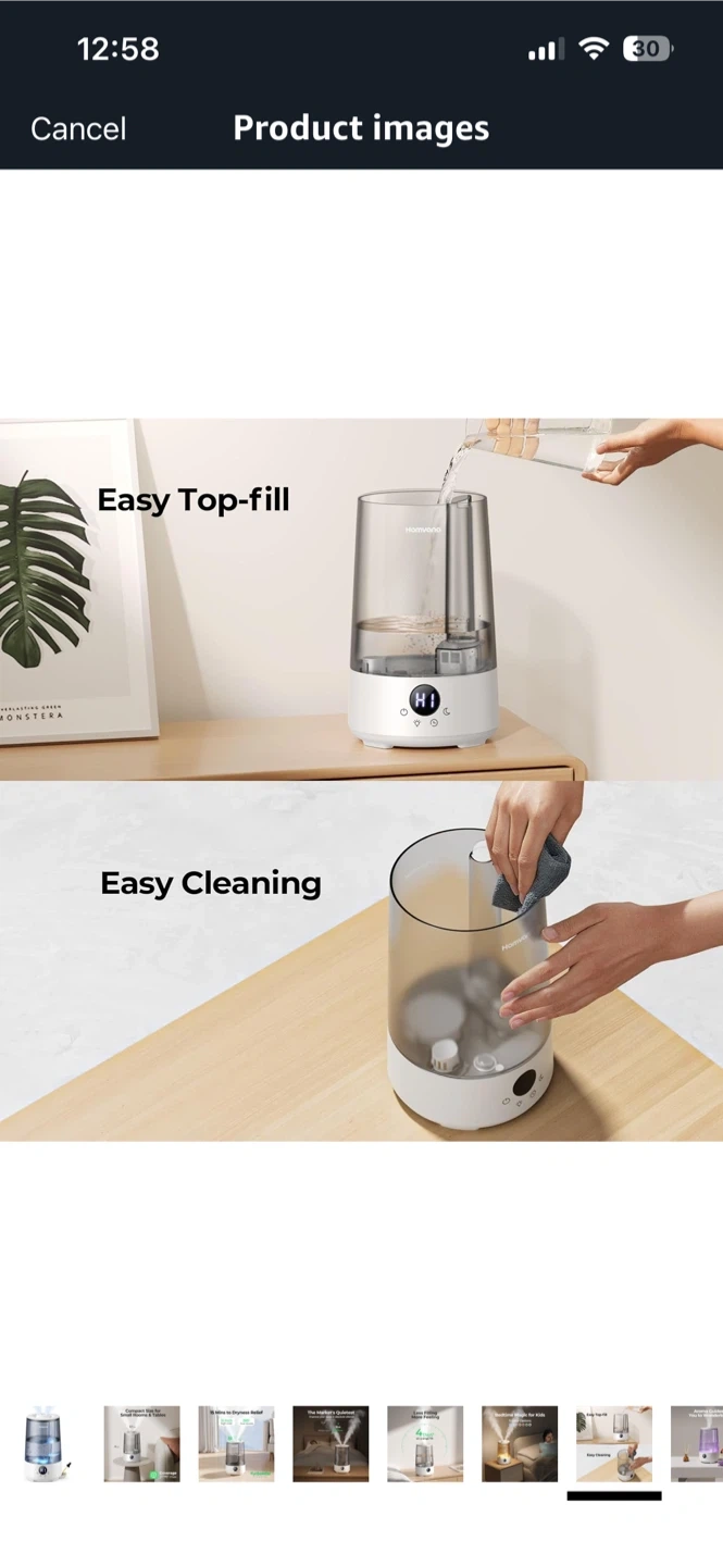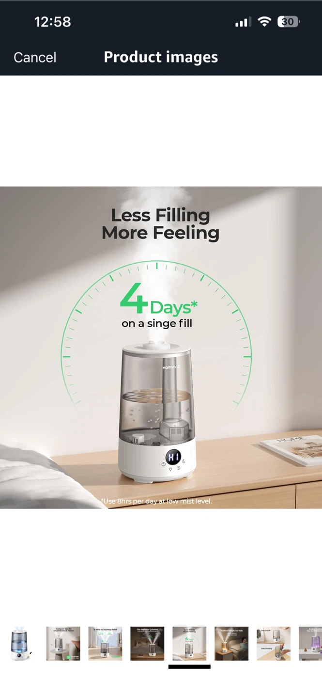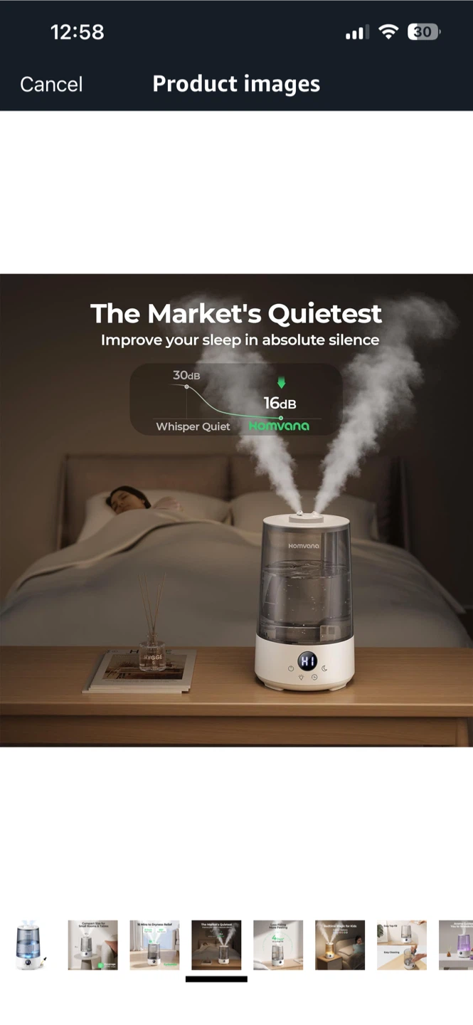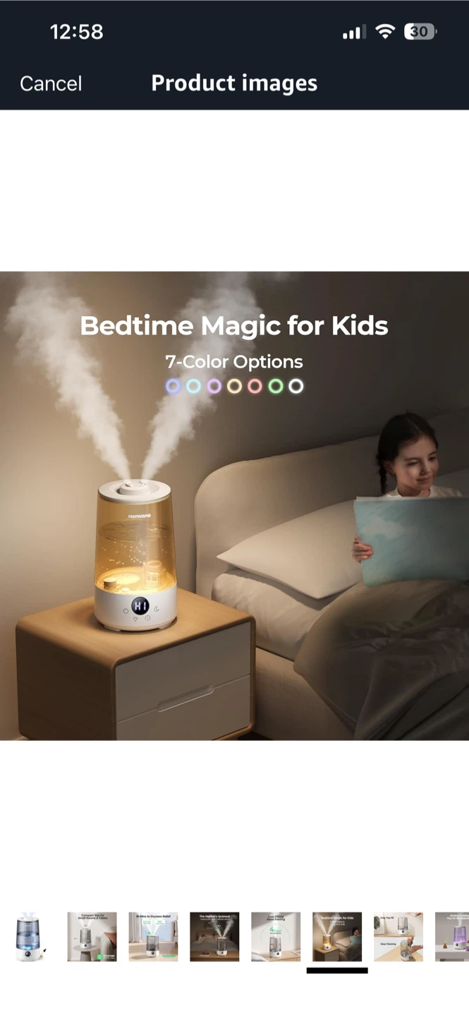 I'm selling a humidifier! It's a compact size, perfect for small rooms and tables. It can cover up to 377ft² max. It also has TurboMist technology. It can provide dryness relief in 15 minutes with 360° dual nozzles. It is very quiet and improves your sleep in absolute silence