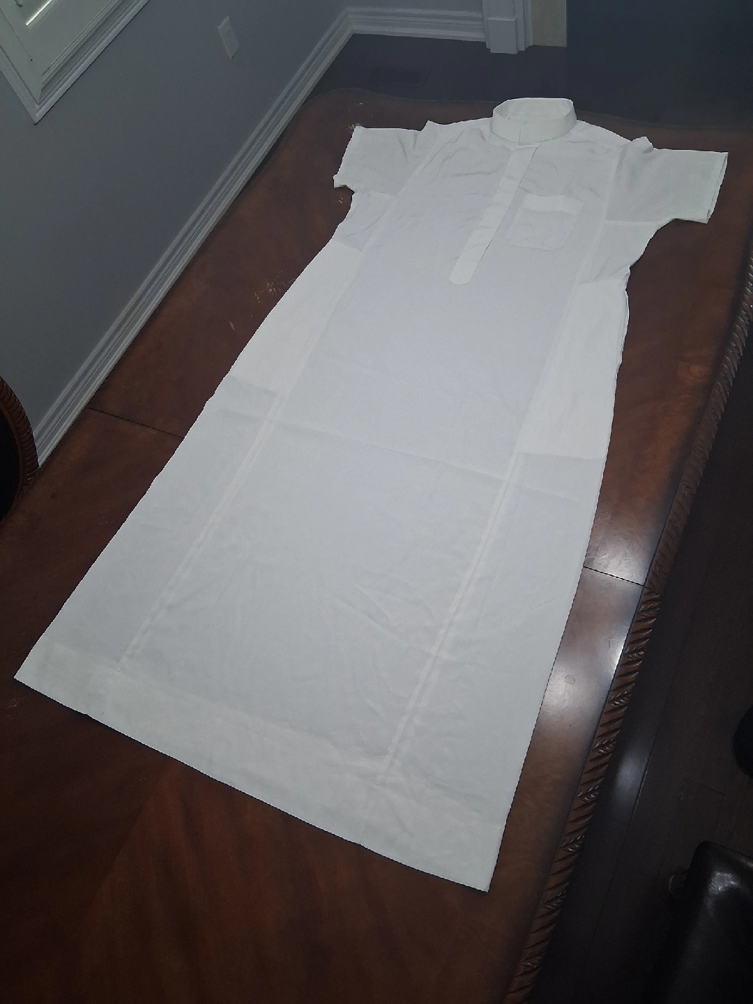 23Selling a white thobe, also known as a dishdasha. It's a traditional Arab garment, perfect for cultural events or everyday wear. The fabric is lightweight and comfortable, making it ideal for warmer weather. It is in good clean condition and ready for a new home