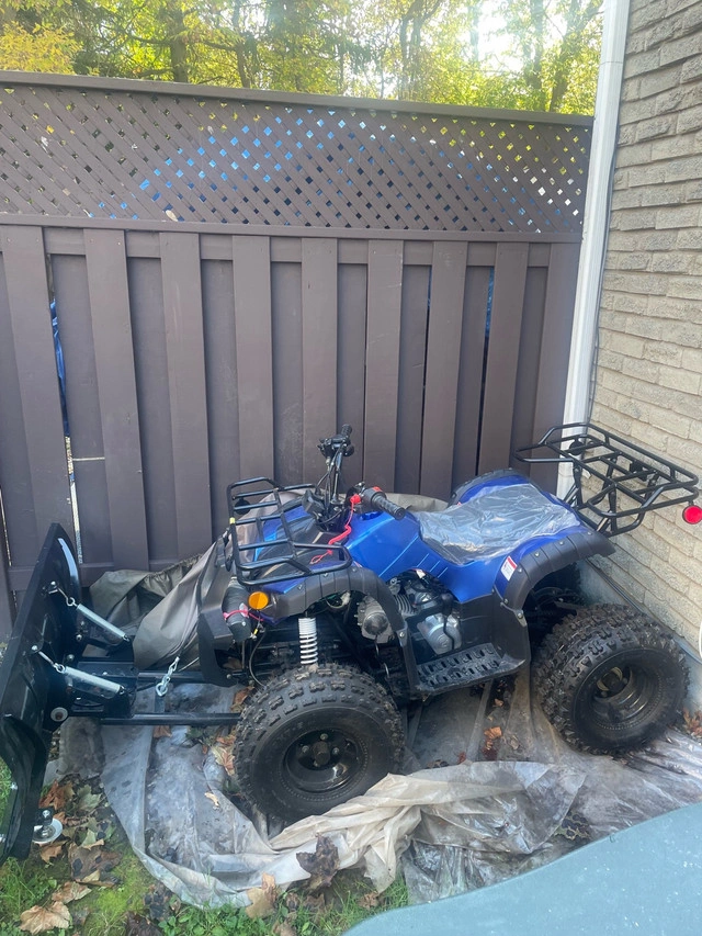 I'm selling a blue Tao Motor 4x2 ATV that's ready for adventure! This ATV features a snowplow attachment, making it perfect for winter tasks, and it's in great shape. While it has been lightly ridden, it is still in excellent condition and has plenty of life left. Here are some of the features: