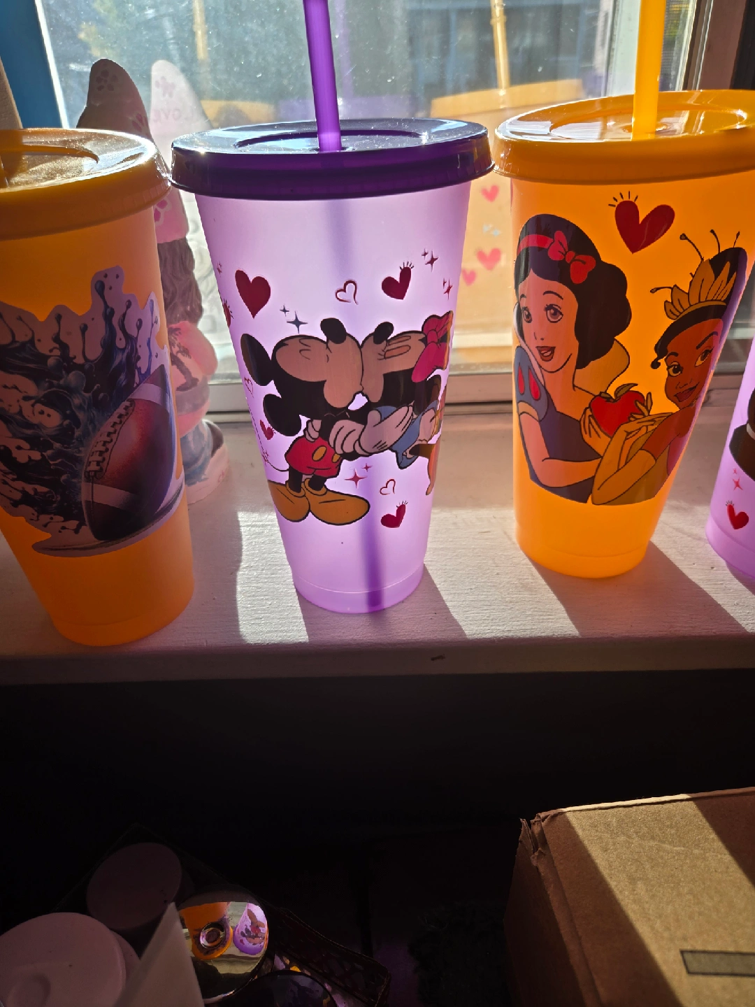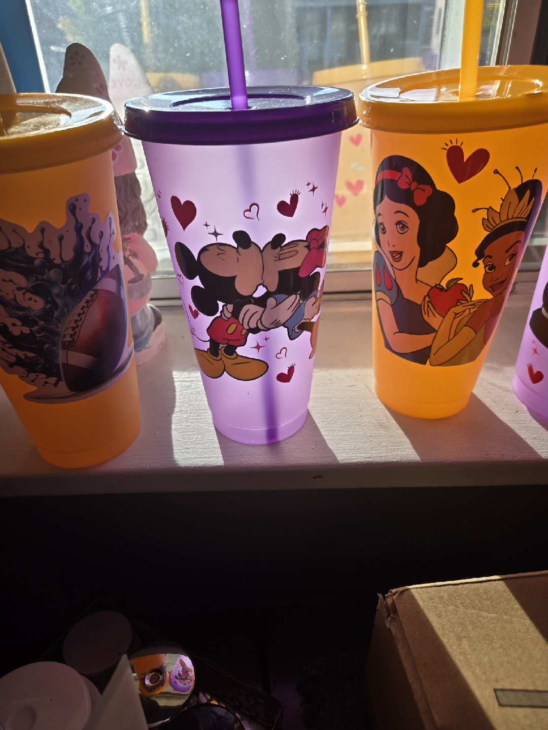 I'm selling a set of colour changing cups! They change colour when you add hot or cold liquids. The lids snap on tightly. Perfect for kids or anyone who loves a bit of fun with their drinks 7 each