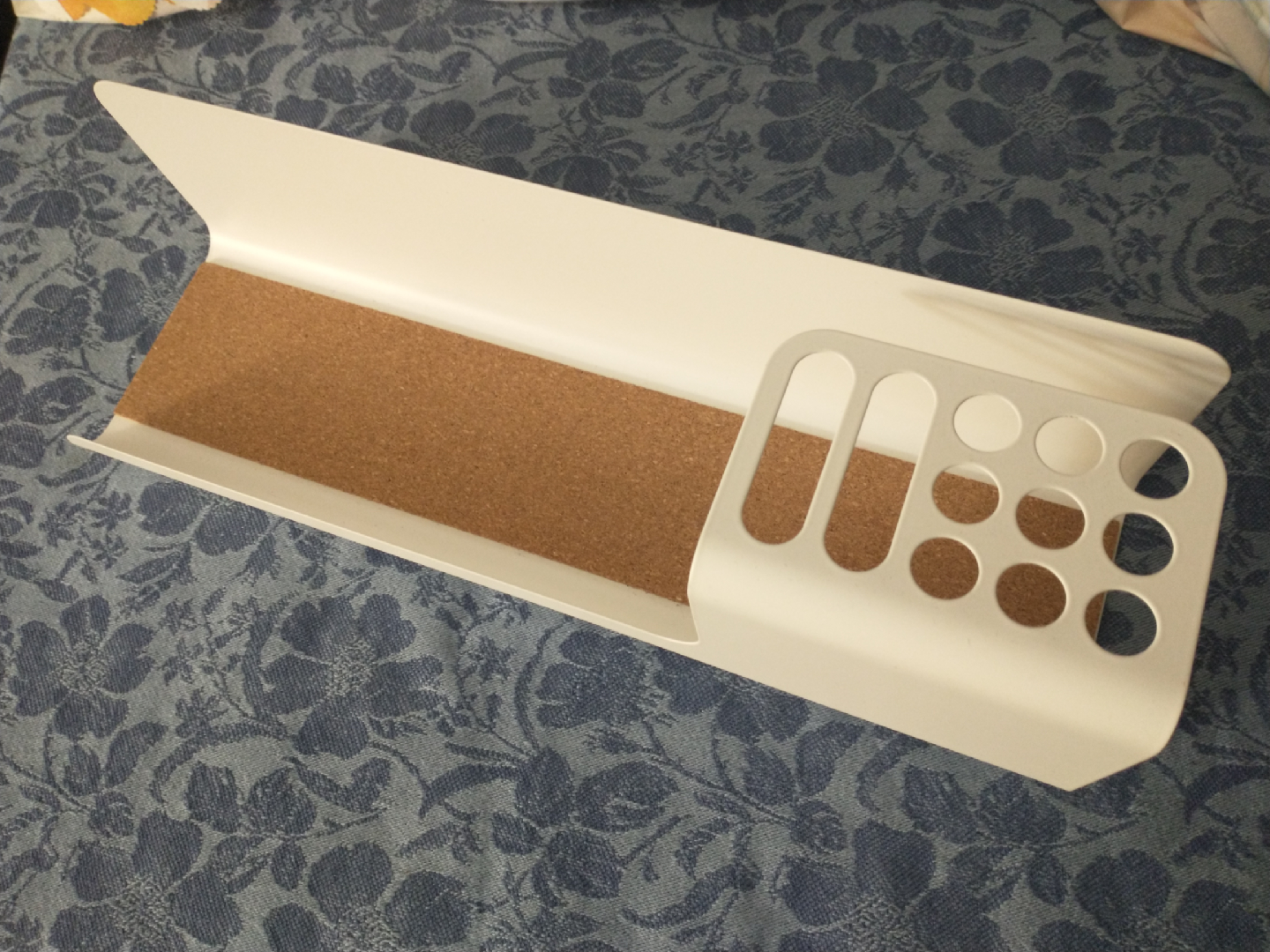Metal desk organizer with a cork bottom from Ikea