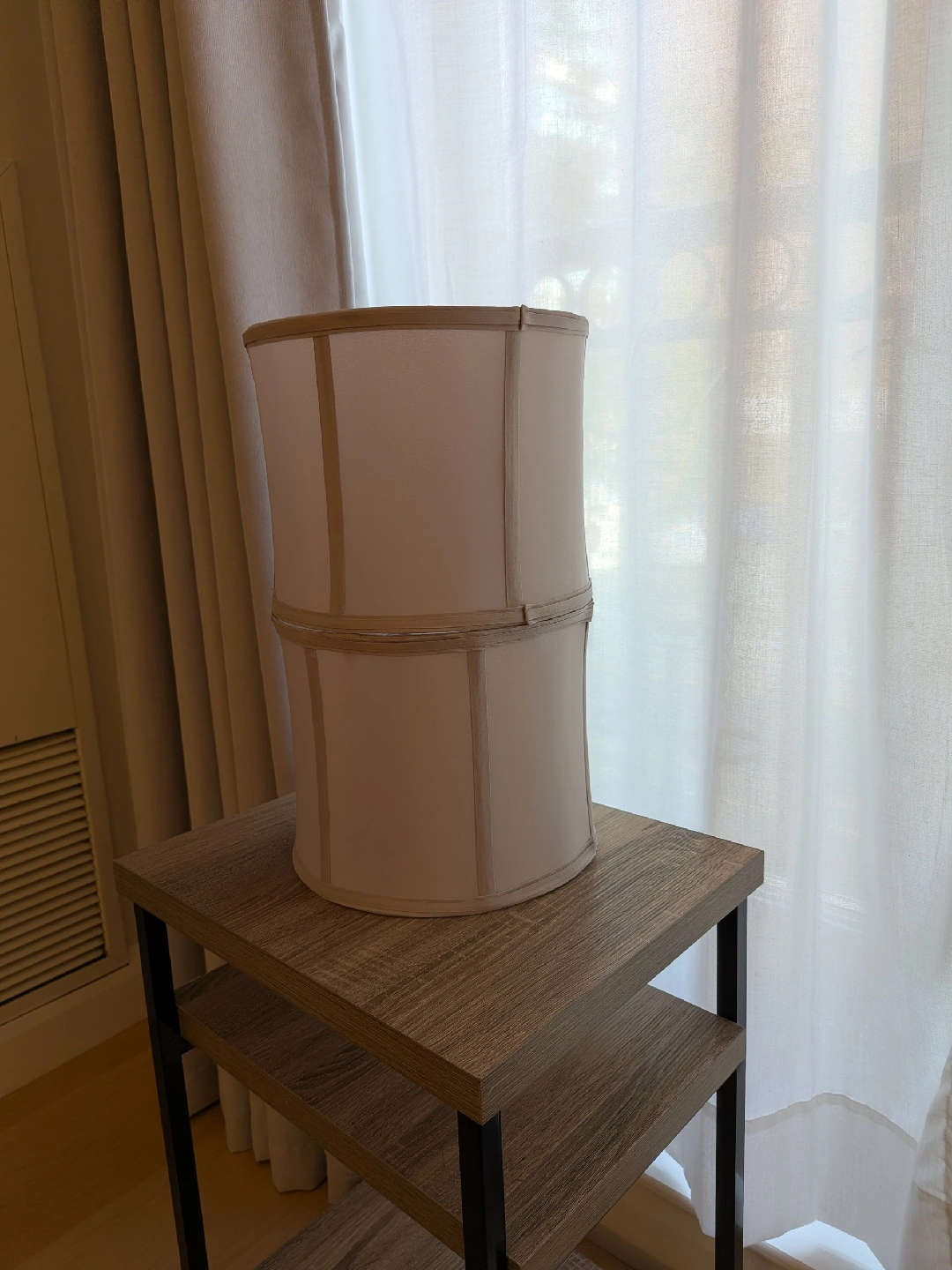 Pair of very light grey lamp shades in good use condition.