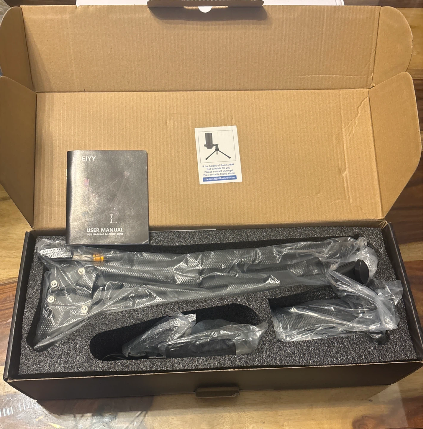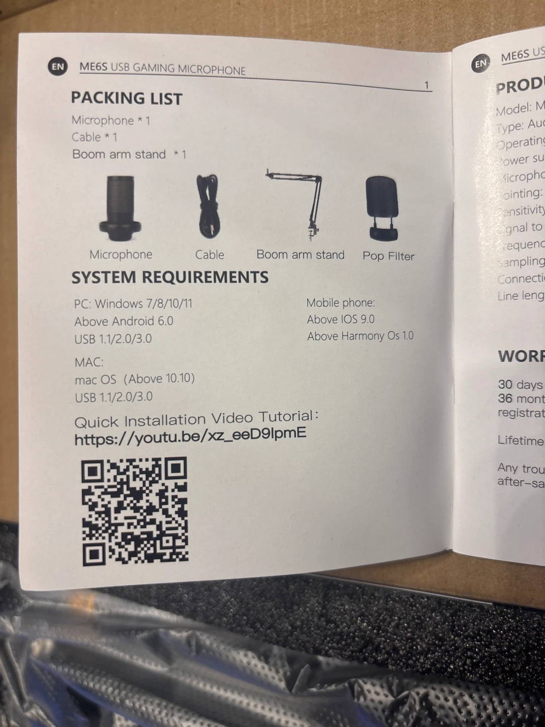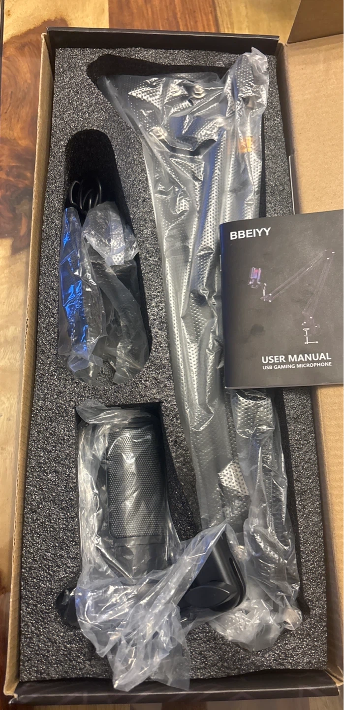 Selling a brand new BBEIYY ME6S USB Gaming Microphone. It comes with the original box and includes all components: microphone, cable, boom arm stand, and pop filter. Perfect for your gaming or recording needs!