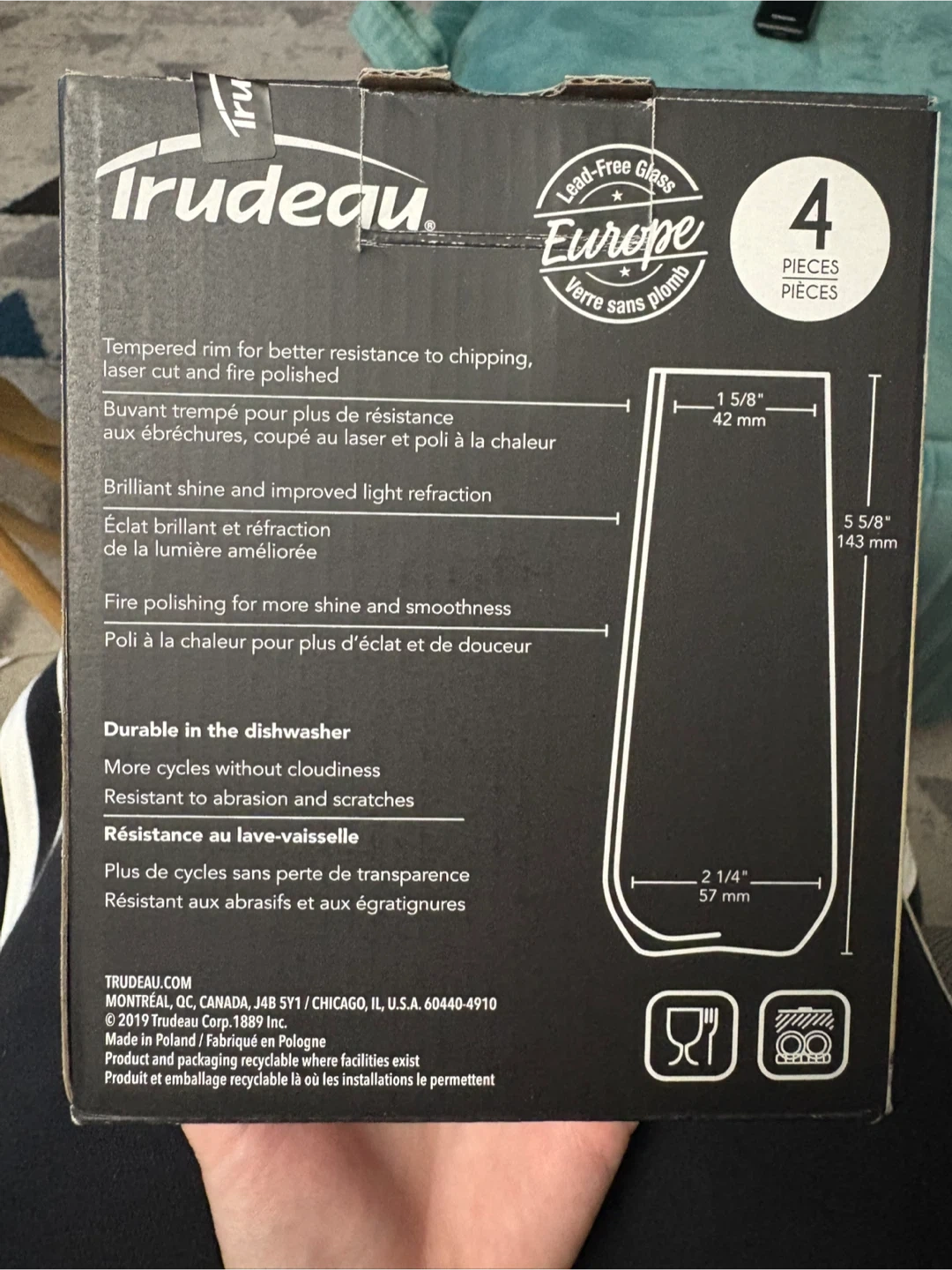 The box includes 4 lead-free glass flutes. They are durable and dishwasher safe, with a tempered rim for better resistance to chipping.
