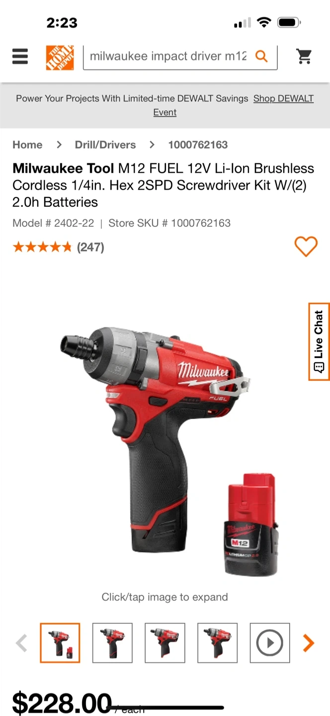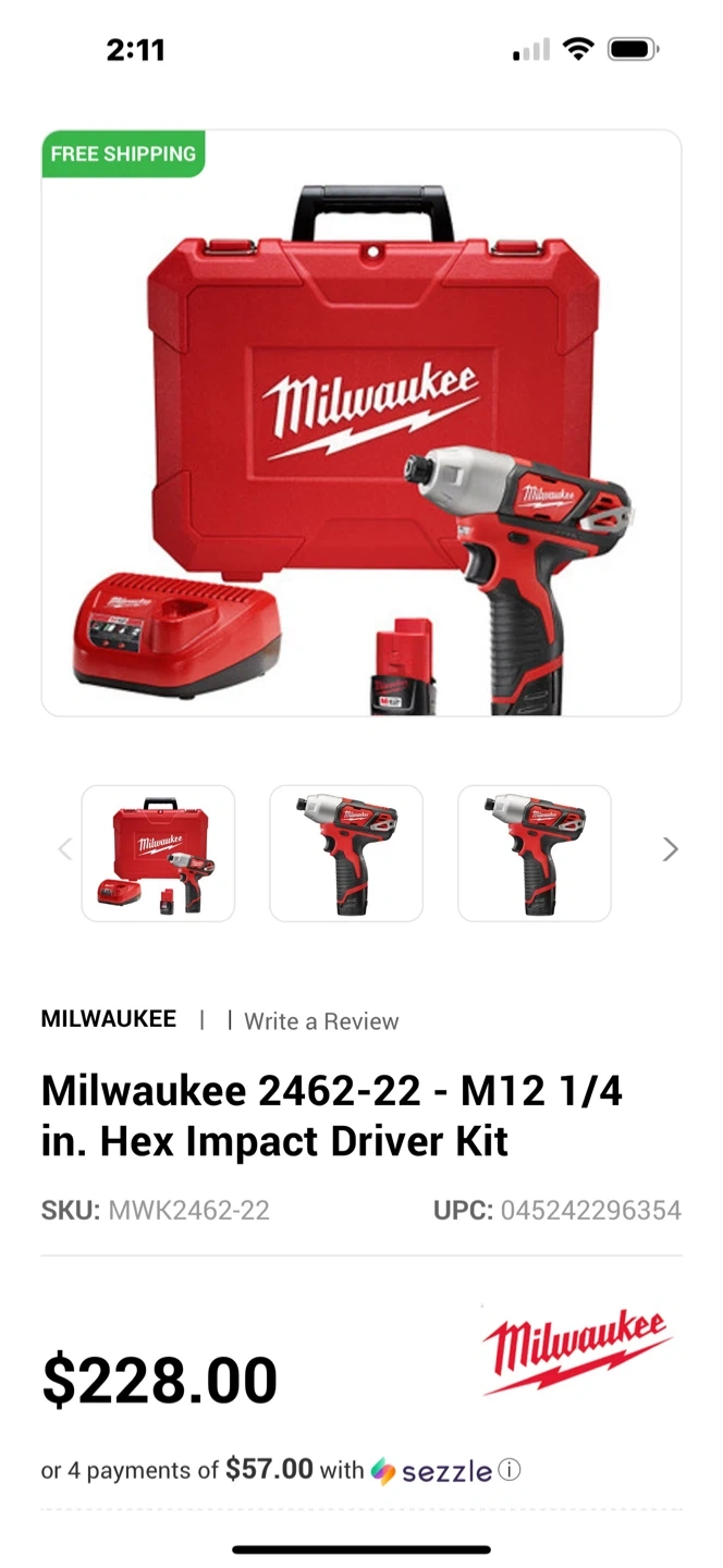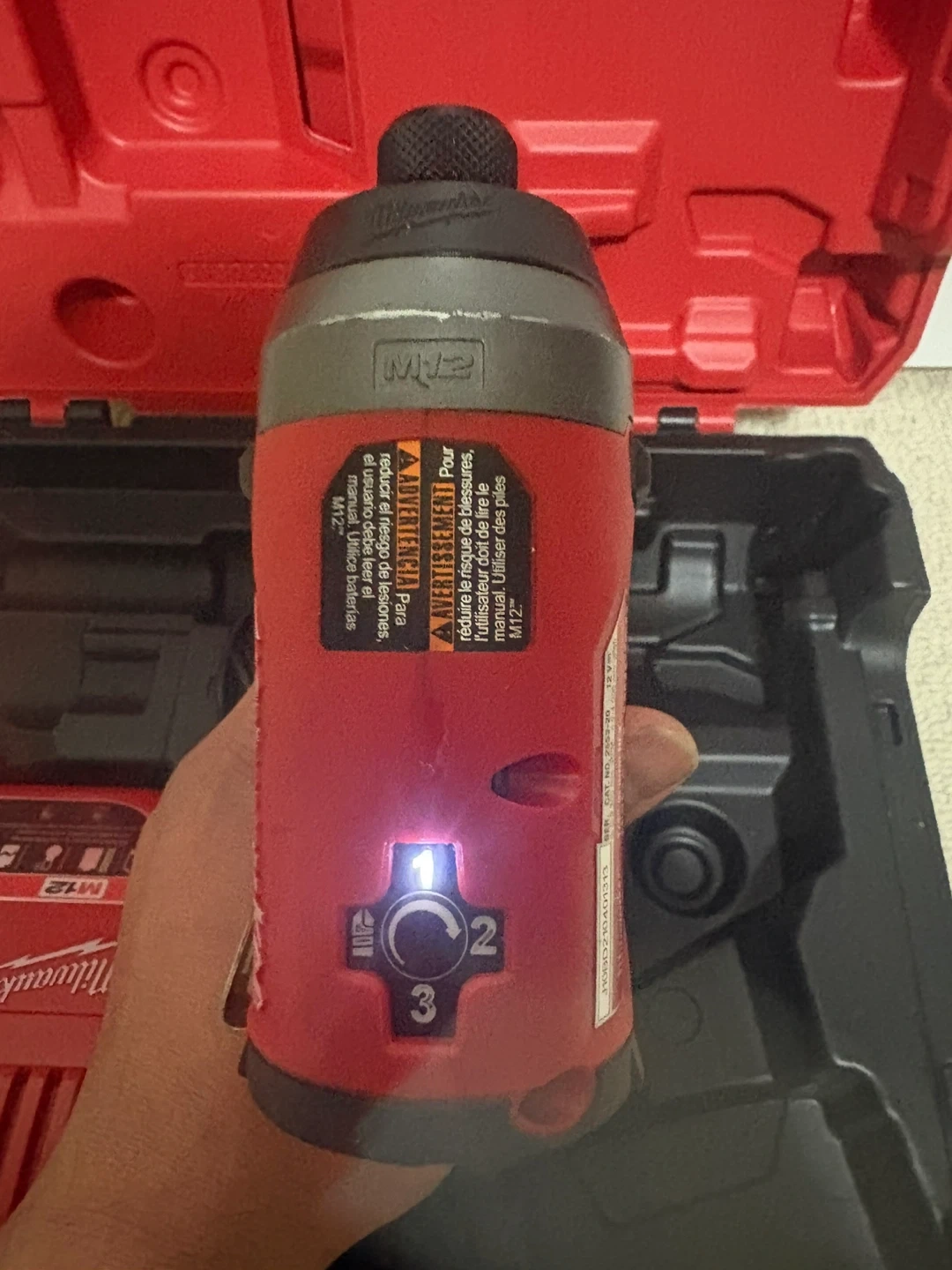Selling a Milwaukee M12 FUEL 1/4" Hex Impact Driver kit. It comes with the impact driver, charger, and a 2.0 AH battery, all in the original case. The impact driver is a compact and powerful tool, perfect for a variety of fastening applications.