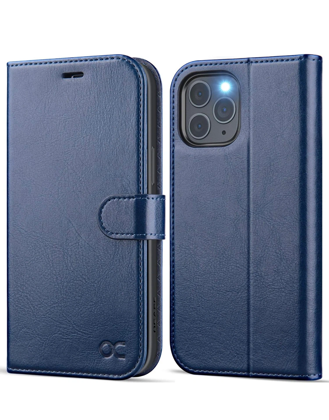 Selling a blue OCASE wallet case for iPhones! It's designed with integrated slots for cards and a compartment for bills.