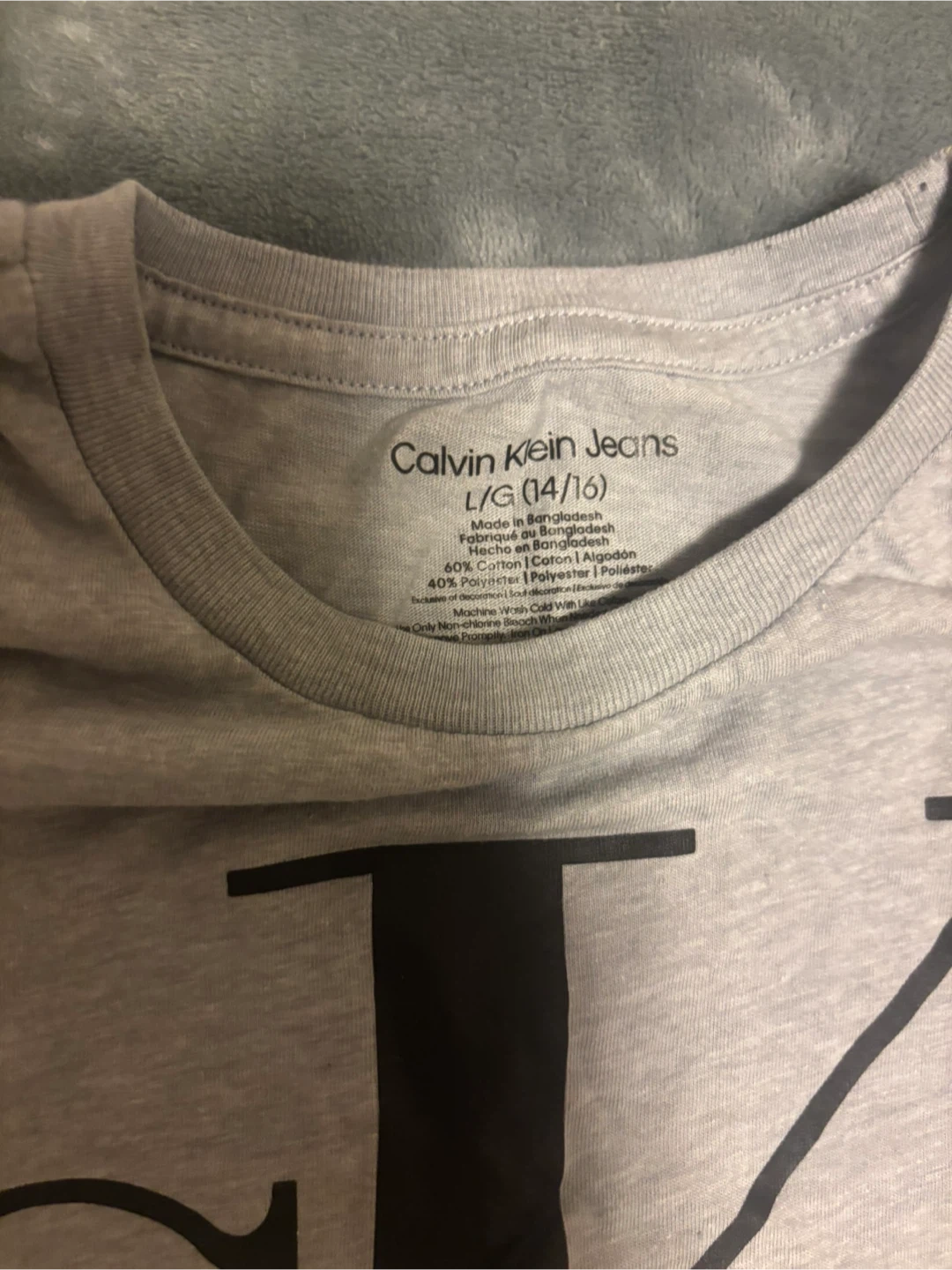 Selling a Calvin Klein Jeans T-shirt in size Large (14/16). It's a stylish and comfortable shirt that would be a great addition to any wardrobe. The material is 60% Cotton and 40% Polyester, making it soft and durable