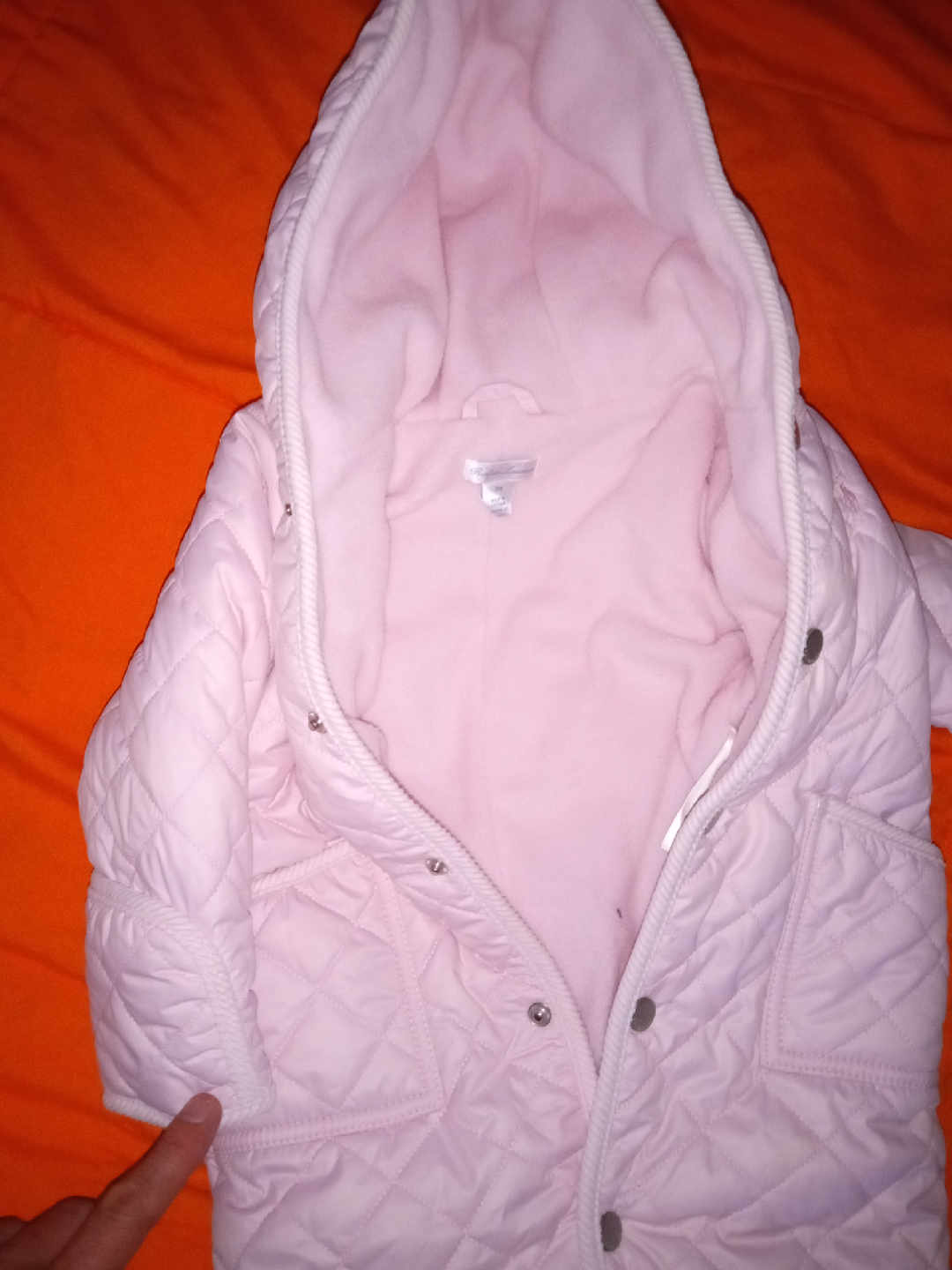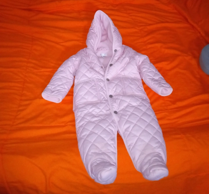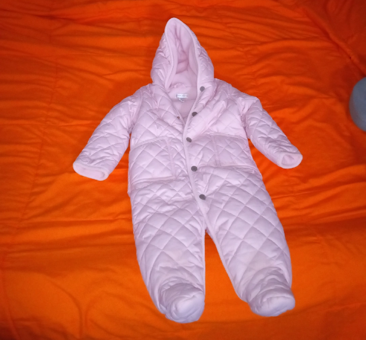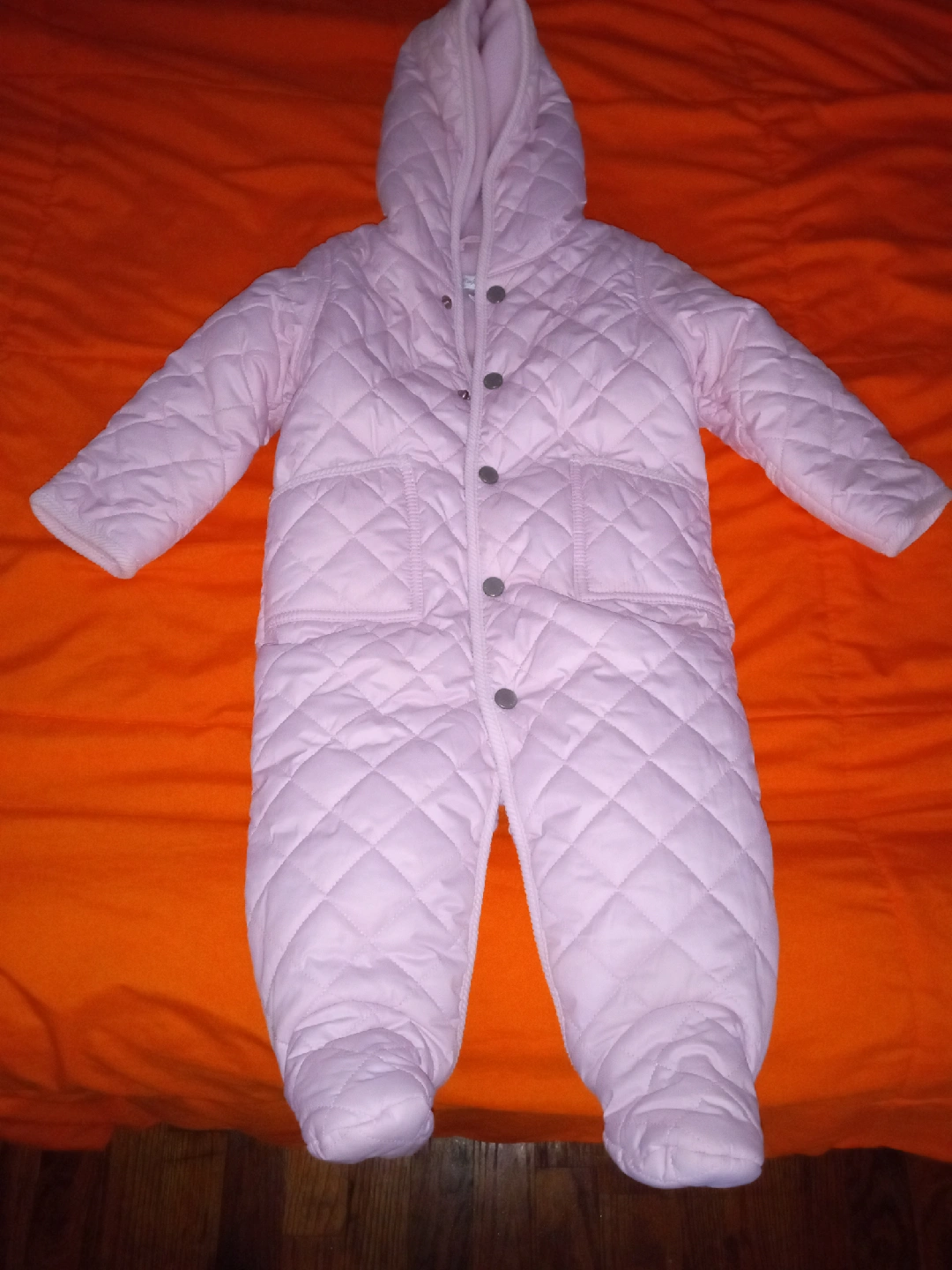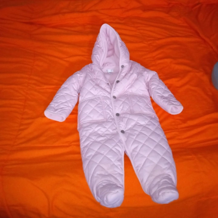 Selling a beautifully Warm & Super cute Polo"Ralph Lauren" baby snowsuit in size 9M. It's a light pink color with a quilted design. Perfect for keeping your little one warm and cozy during these winter months!