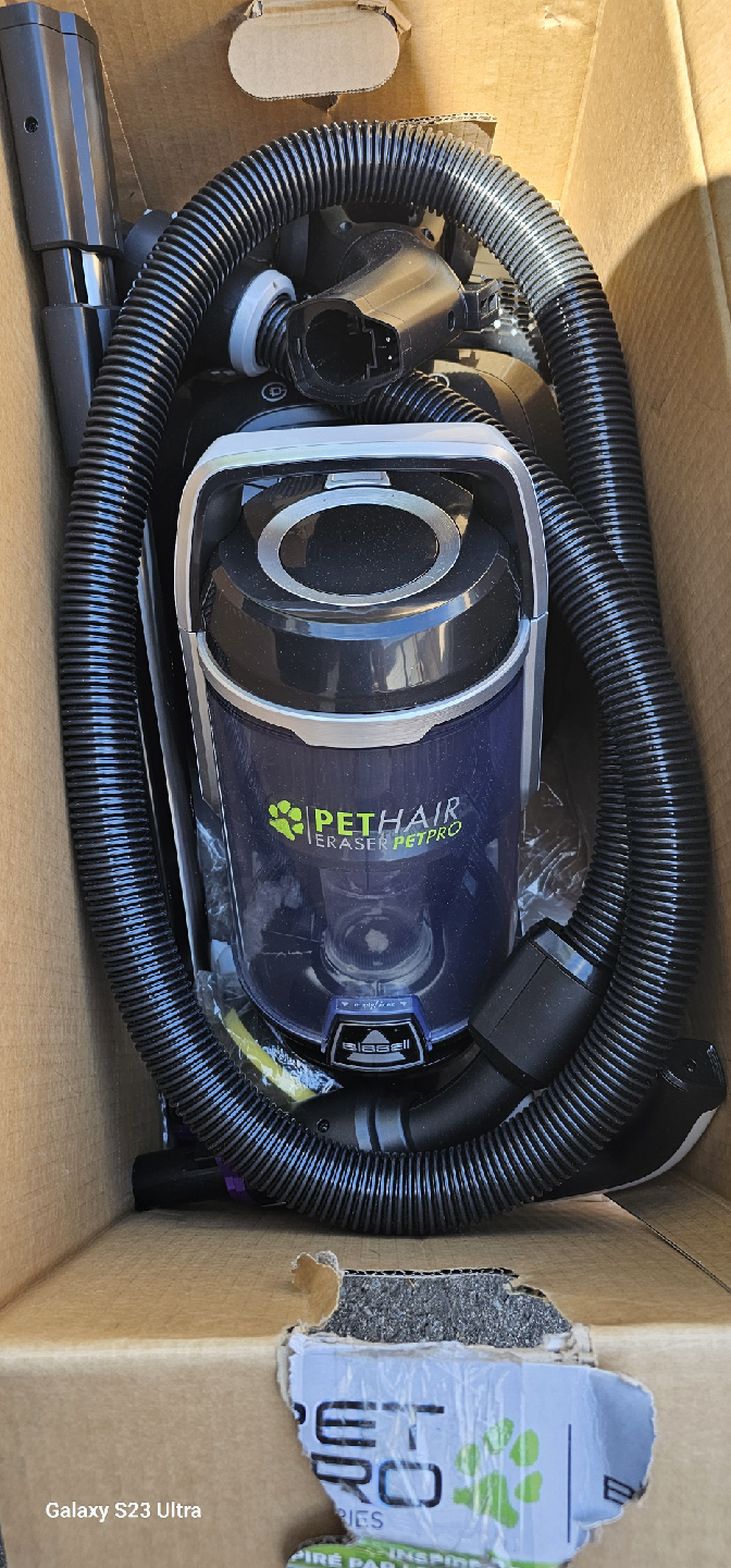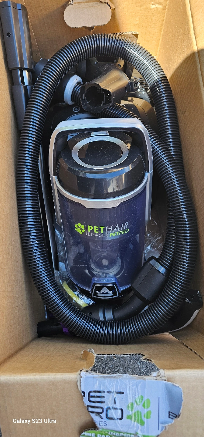 Selling a Bissell Pet Hair Eraser Pet Pro vacuum cleaner. It's in great condition and ready to tackle pet hair! It comes with all the attachments shown in the photos. This is perfect for keeping your home clean and fur-free, especially if you have furry friends running around.I am bought $550 +tax. My wife use only 1 week.