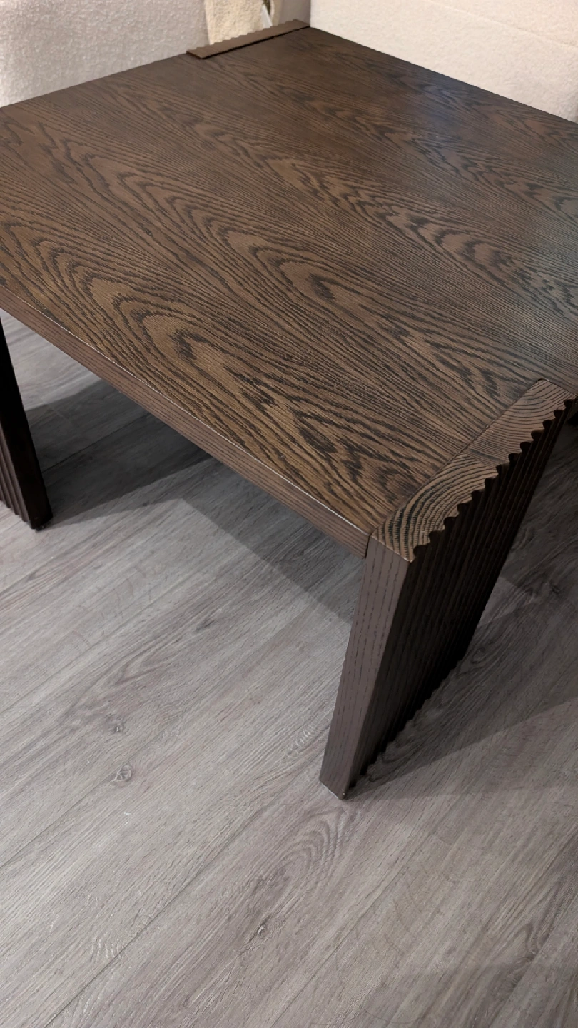 Square coffee table with a dark brown wood finish. It measures approximately 26" x 26". It's a stylish piece to add to your living room!