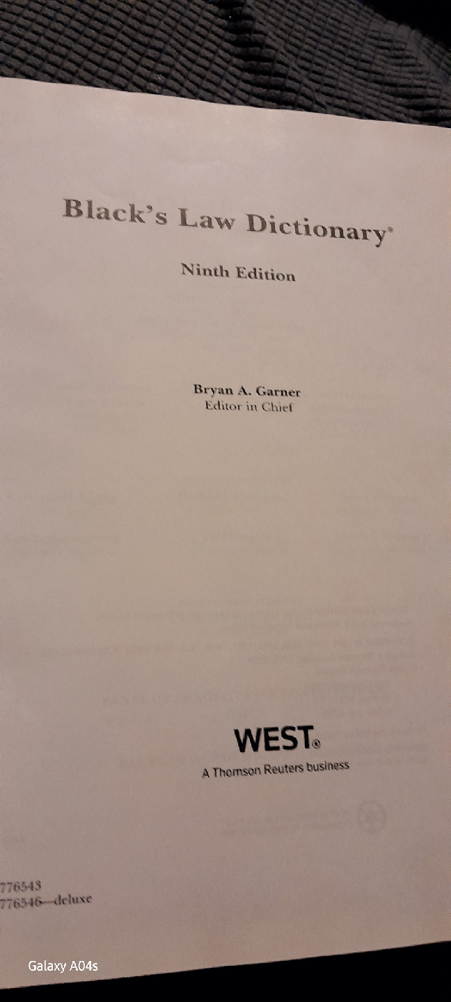 Selling a used copy of Black's Law Dictionary, Ninth Edition. It's in good condition and a helpful resource for anyone studying law or working in the legal field. Authored by Bryan A. Garner. Book category is reference.