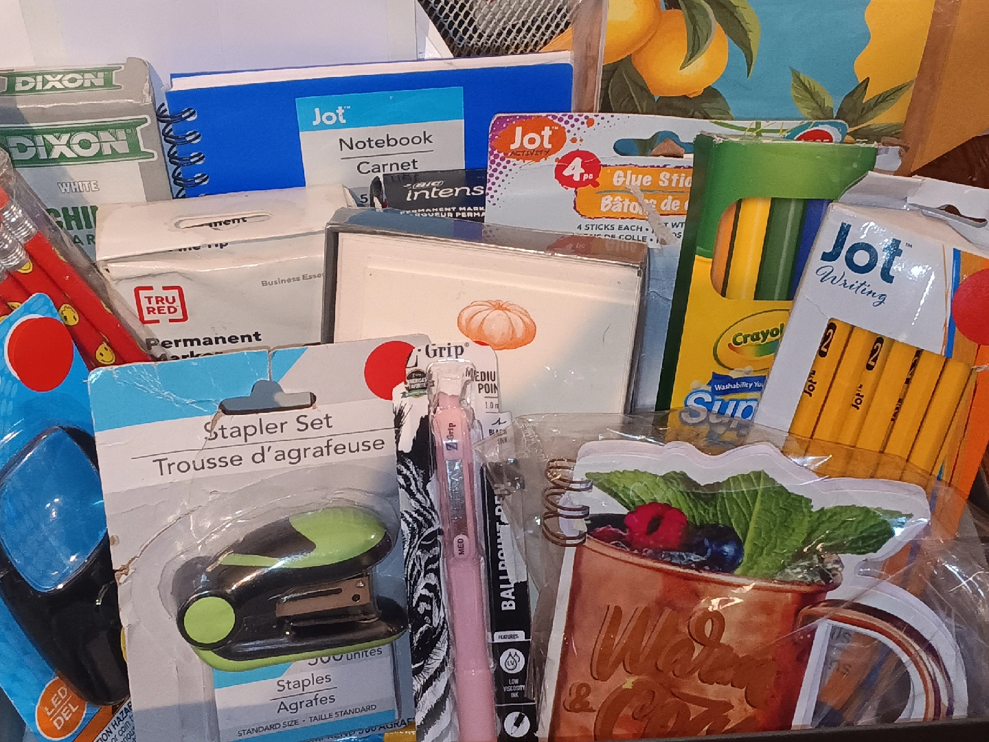 775Selling a mixed lot of office and school supplies. Includes items like markers, glue sticks, pencils, a stapler, and notebooks. Great for stocking up!
