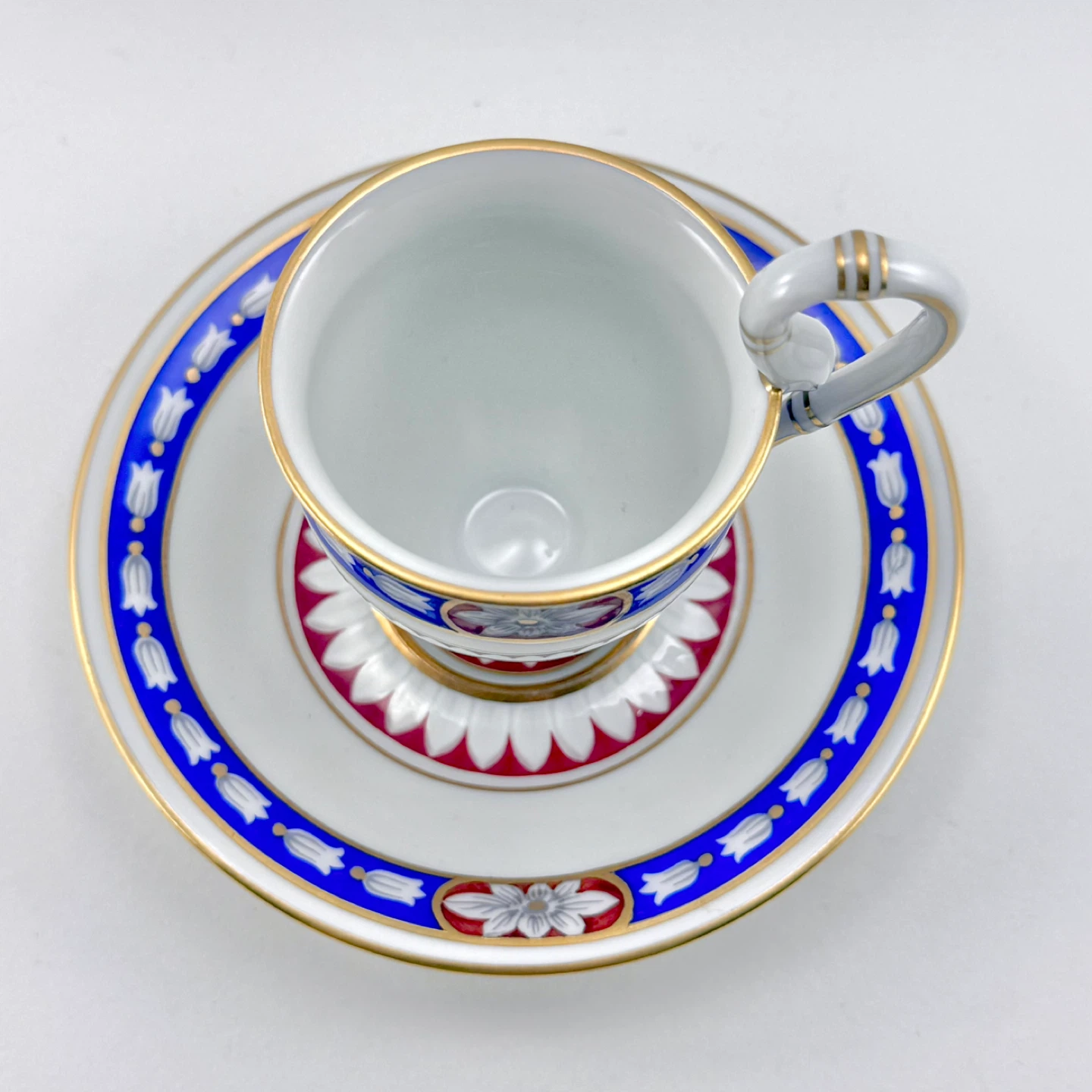 Rare vintage Hochst (made in Germany) fine bone china demitasse (espresso/turkish coffee cup) reproducing a pattern from 1790. No chips, cracks, crazing or gold/enamel loss. Features elegant swan handle