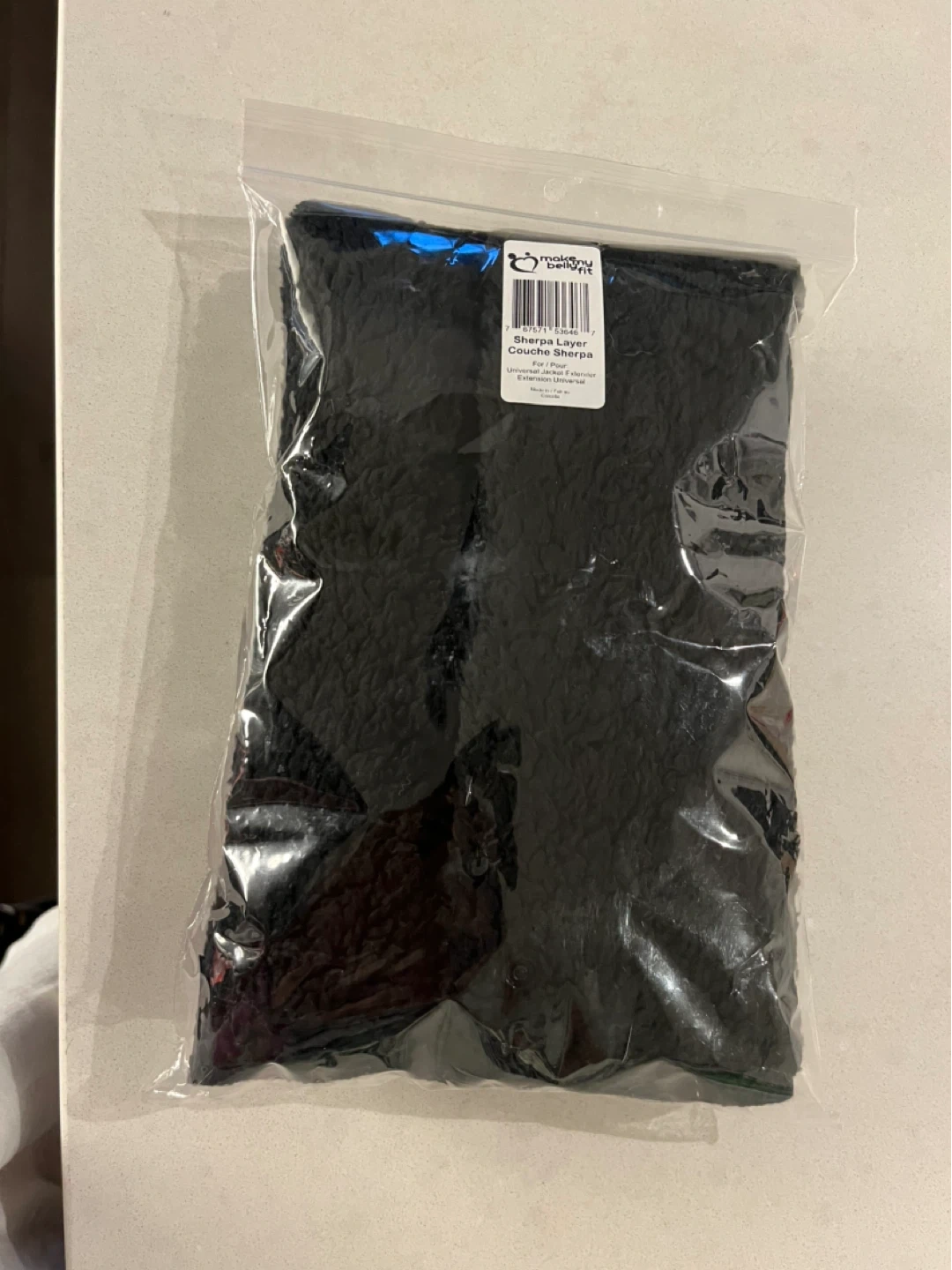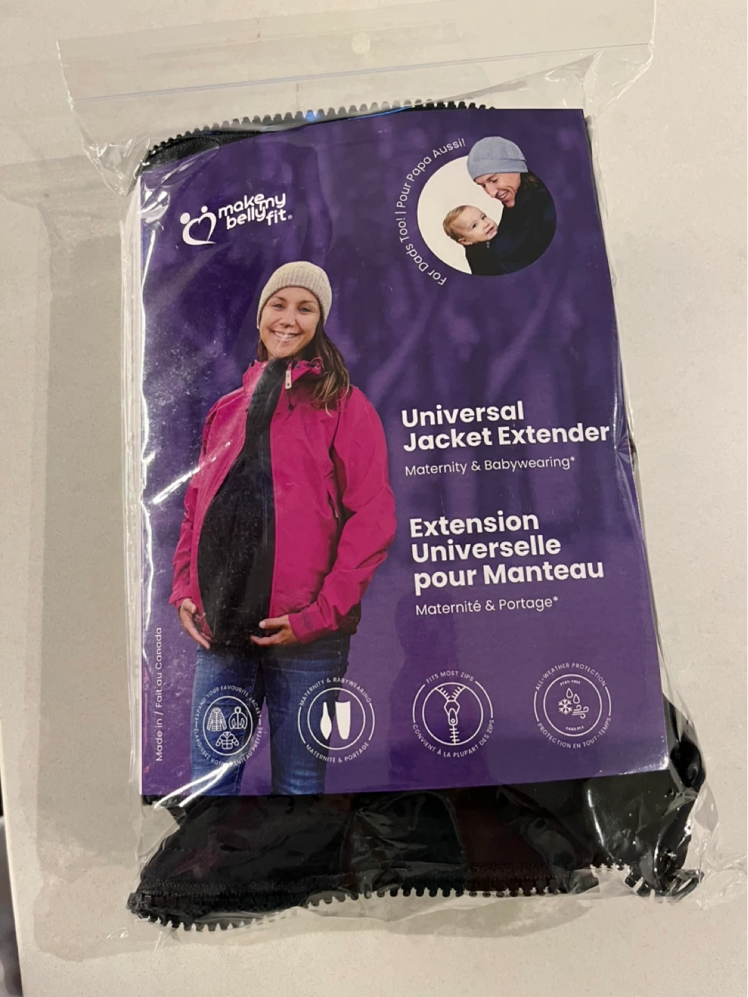 I'm selling a brand new MakeMyBellyFit Universal Jacket Extender! It's a sherpa layer in black. This extender adapts to any jacket with a zipper and includes a removable polar fleece insert. It's perfect for maternity and babywearing! Originally retails for $134.99 CAD