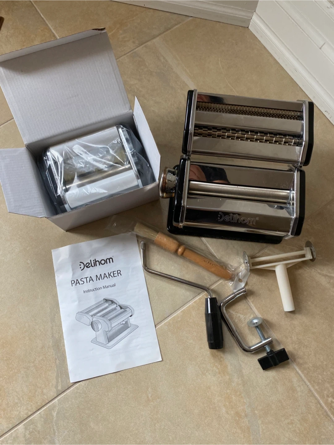 Selling a brand new pasta maker, with ravioli maker still in its original box! It comes with all the components, including the instruction manual, handle, and clamp. Great for gift giving.