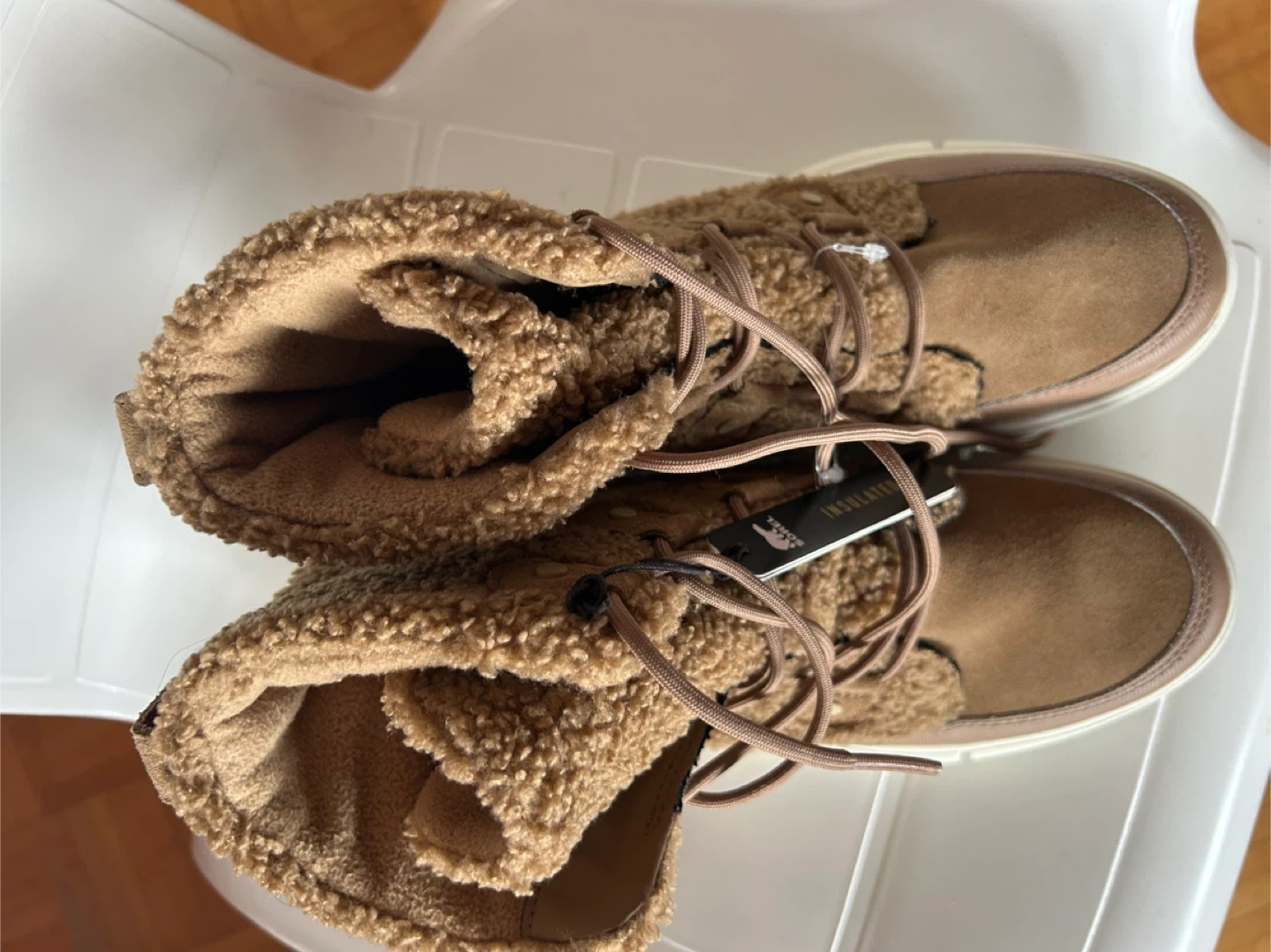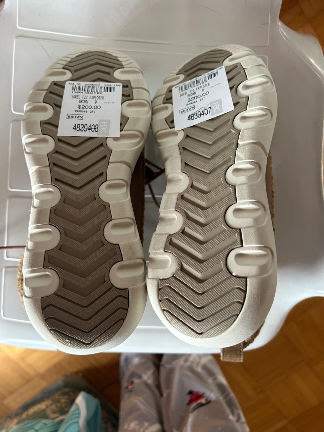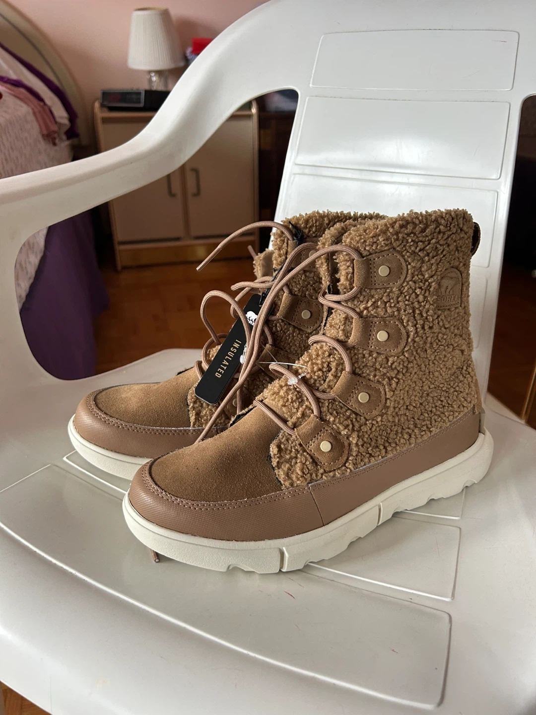 Selling a pair of Sorel F22 Explorer boots in brown, women's size 9, brand new with tag!These cozy boots feature a faux fur lining and are perfect for keeping your feet warm and stylish.