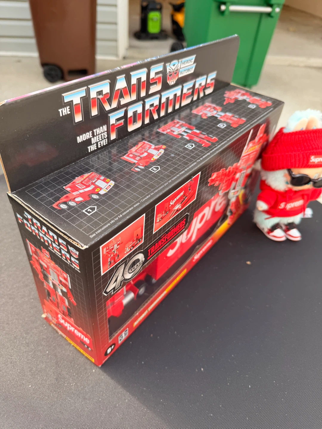 Selling a brand new Supreme Transformers Autobot Commander Optimus Prime! This is a collaboration between Transformers and Supreme, celebrating 40 years of Transformers (1984-2024)