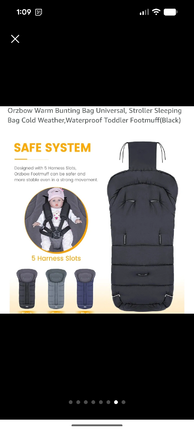 Keep your little one cozy with this Orzbow warm bunting bag! Also called a footmuff, it's a universal stroller sleeping bag, perfect for fall and winter weather. The bag is waterproof and fits into the 5 points of your stroller harness to sit behind your baby and zips all the way up to keep the warmth in. It features easy access with a two-way zipper, making it convenient to get your baby in and out, less work than getting them all suited up with sweaters and jackets. It also comes with its original bag!