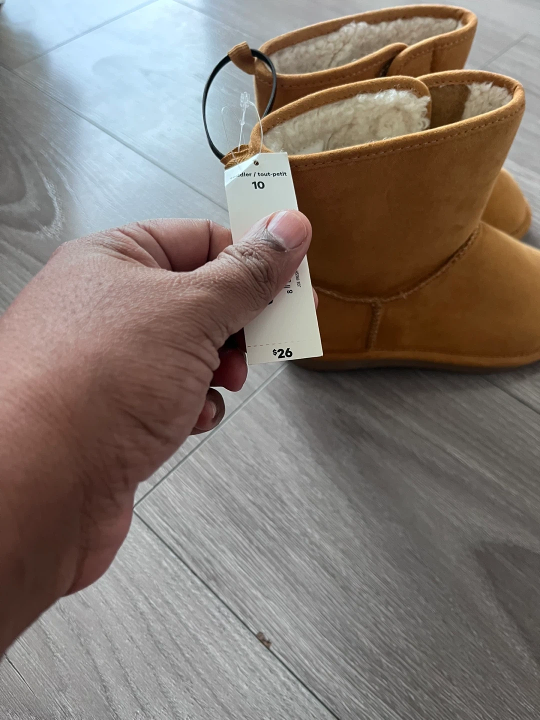 These are a brand new pair of winter boots! They're a size 10 and have a cozy, warm lining. The original tag is still attached, showing they were originally $26. Perfect for keeping your little one's feet warm this winter