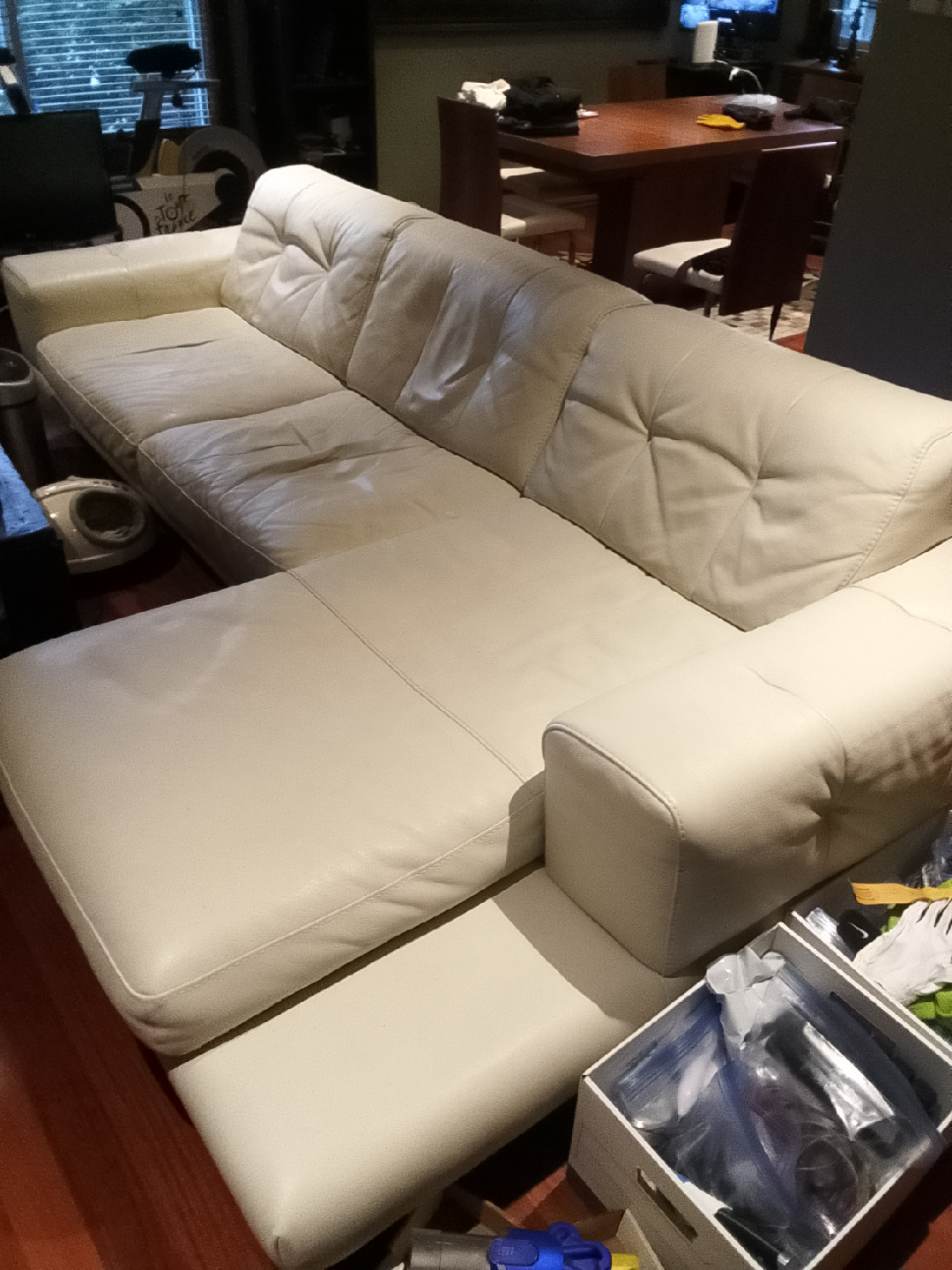 * the leather sectional sofa should worth $1000. purchased new from Mobilia for $ $4800 + tax= $5424.