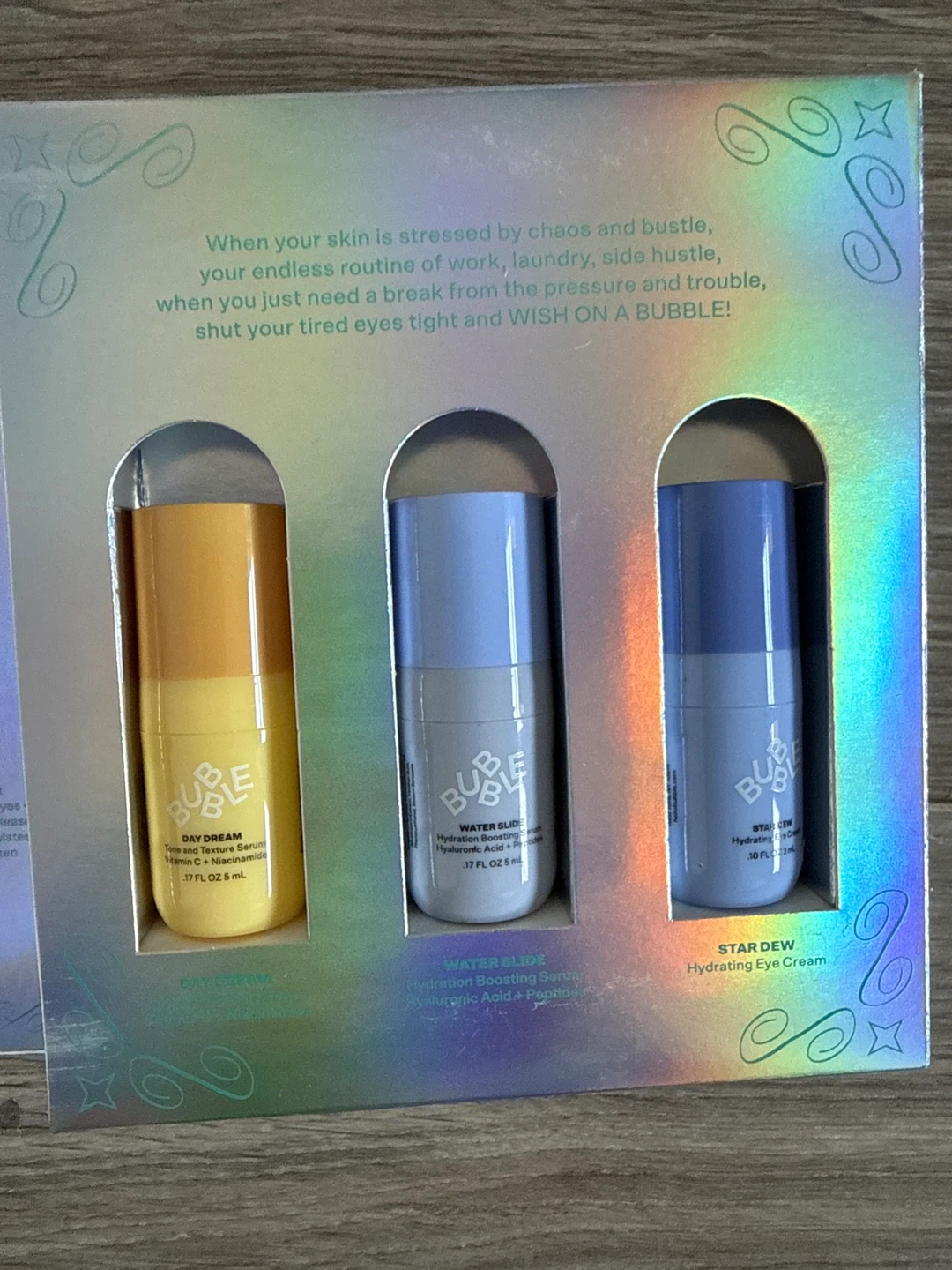 1 / 51 / 5Buy & SellBUBBLE SKINCAREBUBBLE SKINCARE$40BUBBLE THE WISH LIST. TRAVEL SIZE SKINCARE. 6 minisConditionNewWHERE TO MEETCheck LocationView MapSELLERverifiedGinaEast Village16610 reviews0 chats·0 favorites·8 viewsSEND CHAT TO SELLERHi Gina! I’m interested in your listing.Hi Gina! I’m interested in your listing.Get the Karrot app to chatSign In to chat
