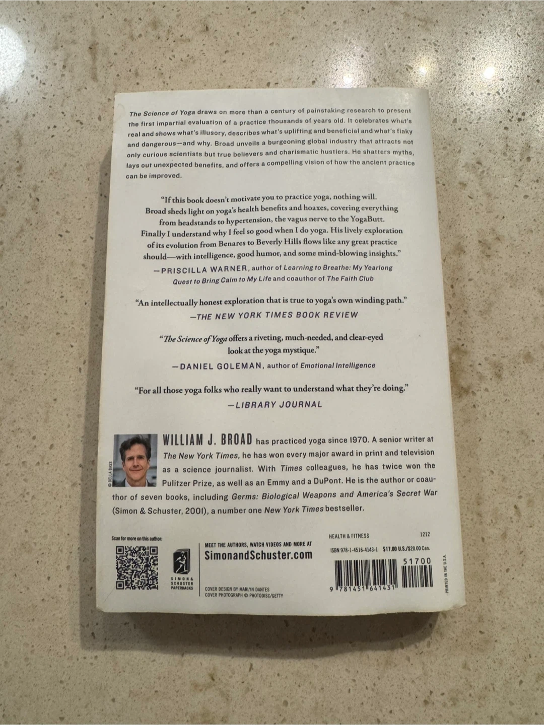 Selling "The Science of Yoga: The Risks and the Rewards" by William J. Broad! This New York Times bestseller combines narrative with brisk portraits of people who combine yoga knowledge with science. It offers a compelling watch of how the ancient practice can be improved. The book dives into the benefits and risks of yoga, exploring everything from headstands to hypertension. Originally priced at $17.00 USD.