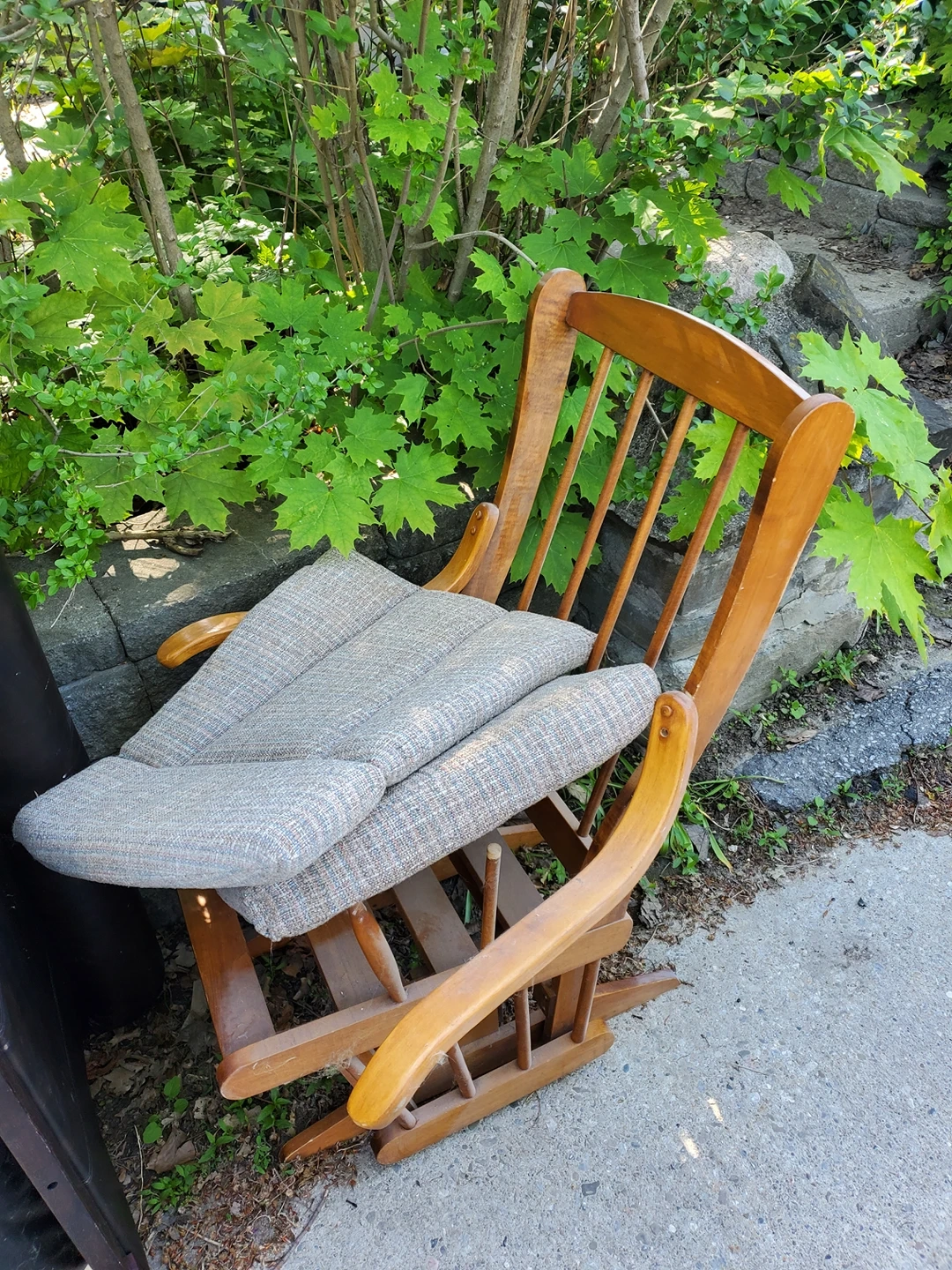 A solid rocking chair that needs some repair. Comes from a smoke and bug free home.