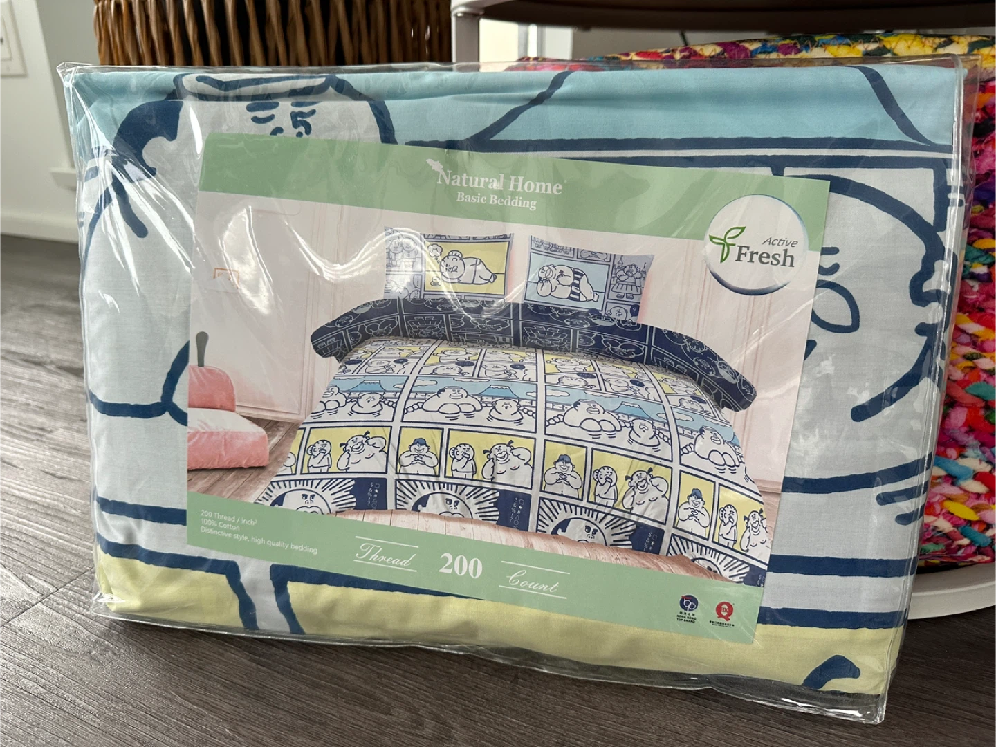 This 200 Thread count, made with 100% cotton bedding set includes a duvet cover (88"x88"), a fitted sheet (60"x78"), and two pillowcases (20"x30"). It's brand new and still in the original packaging!