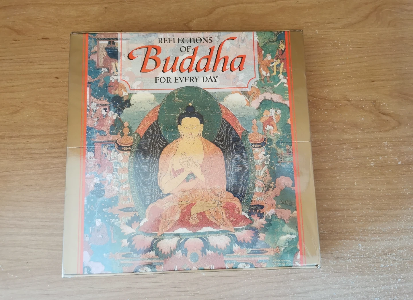 The words of the Buddha have provided inspiration for those on a spiritual path for over 2,500 years and resonate as strongly today as they did when first spoken. Now the greatest Buddhist teachings are assembled on individual cards so that seekers of spiritual enlightenment can draw on them to begin each day, week, or month. This beautifully boxed set contains 366 meditation cards, mandala poster and beautiful 32 page booklet. Those seeking enlightenment can use the kit in their own, completely personalized way, by creating an "altar" with the box and poster or by simply meditating on each card's meaning. This unique combination of cards, altar, poster, and booklet will offer inspiration and guidance for those seeking a more enlightened life.