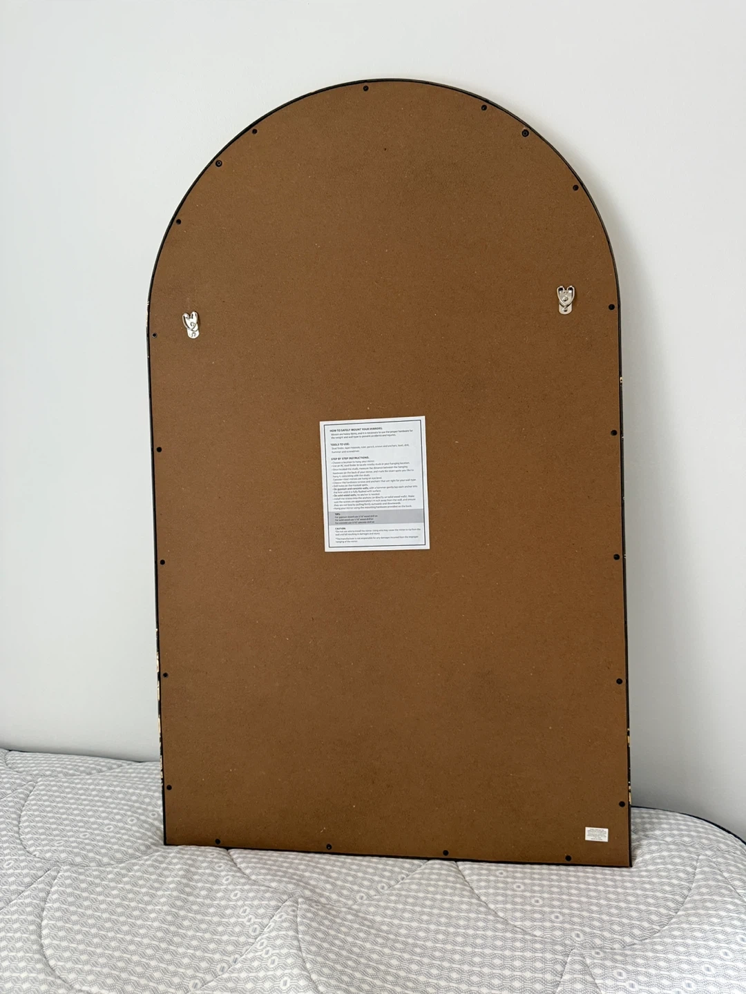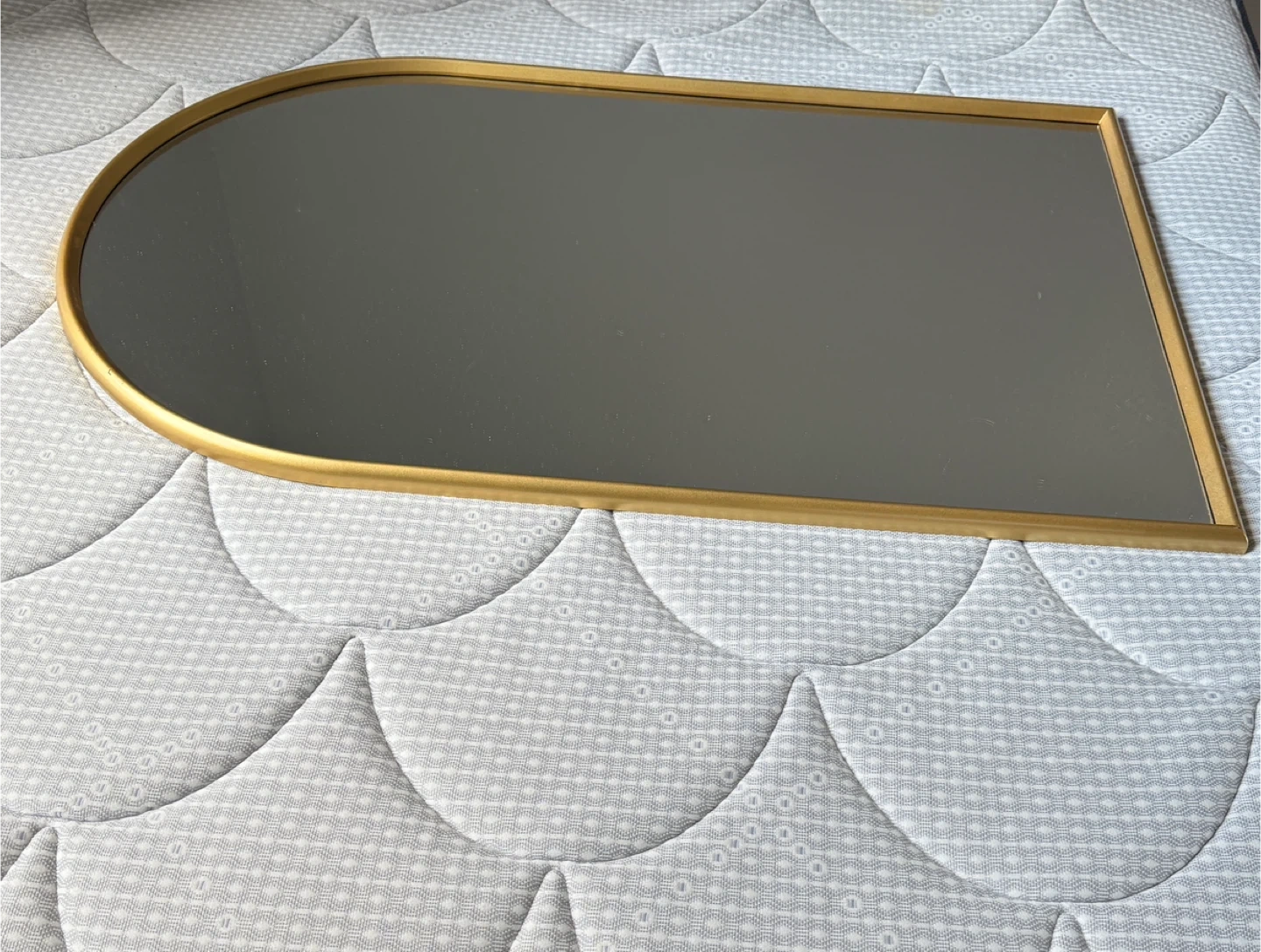 Selling a stylish like new arched wall mirror with a gold frame! It's in great condition and ready to brighten up any room. The mirror has a sleek and modern design that would complement a variety of decor styles.