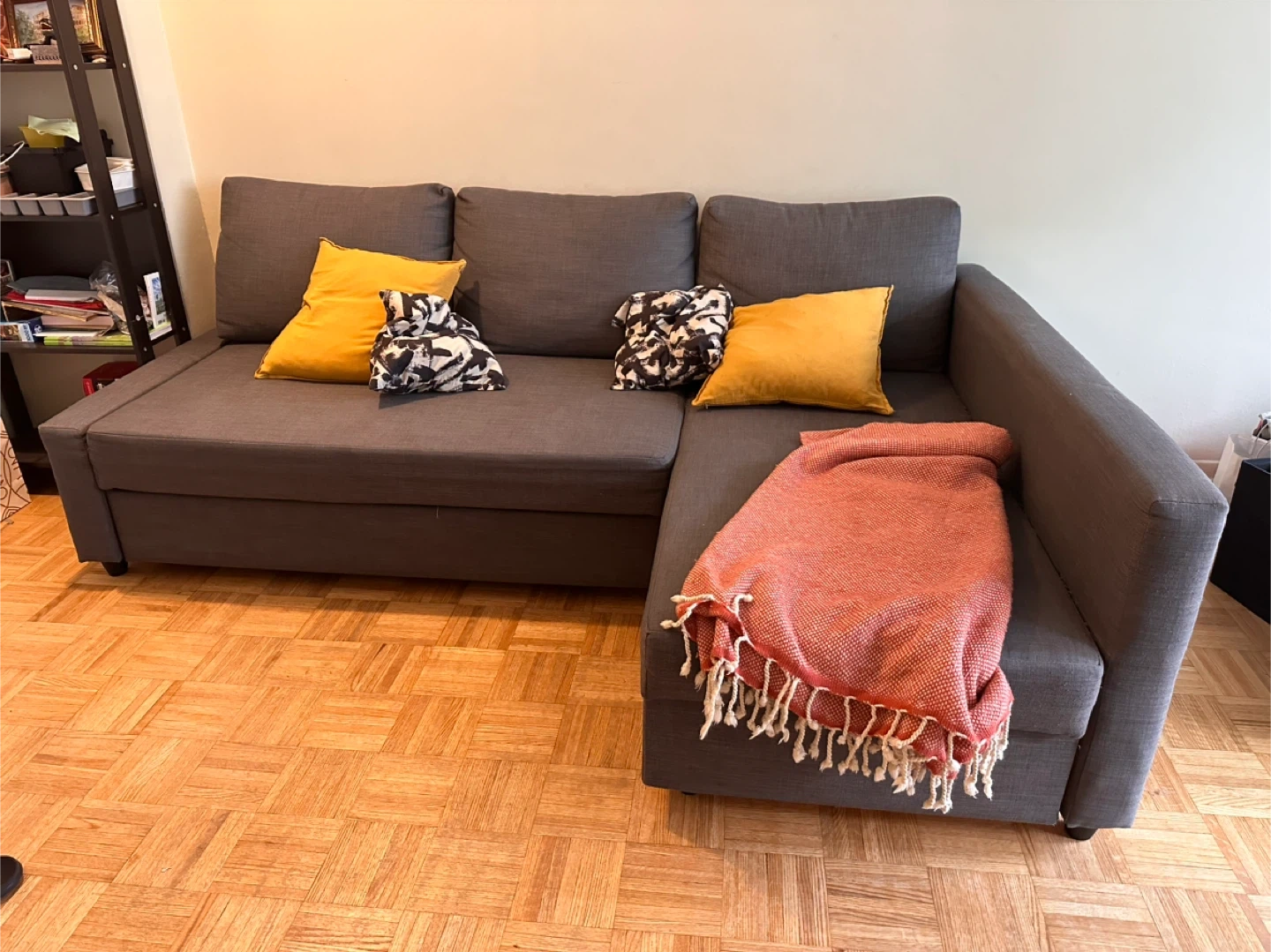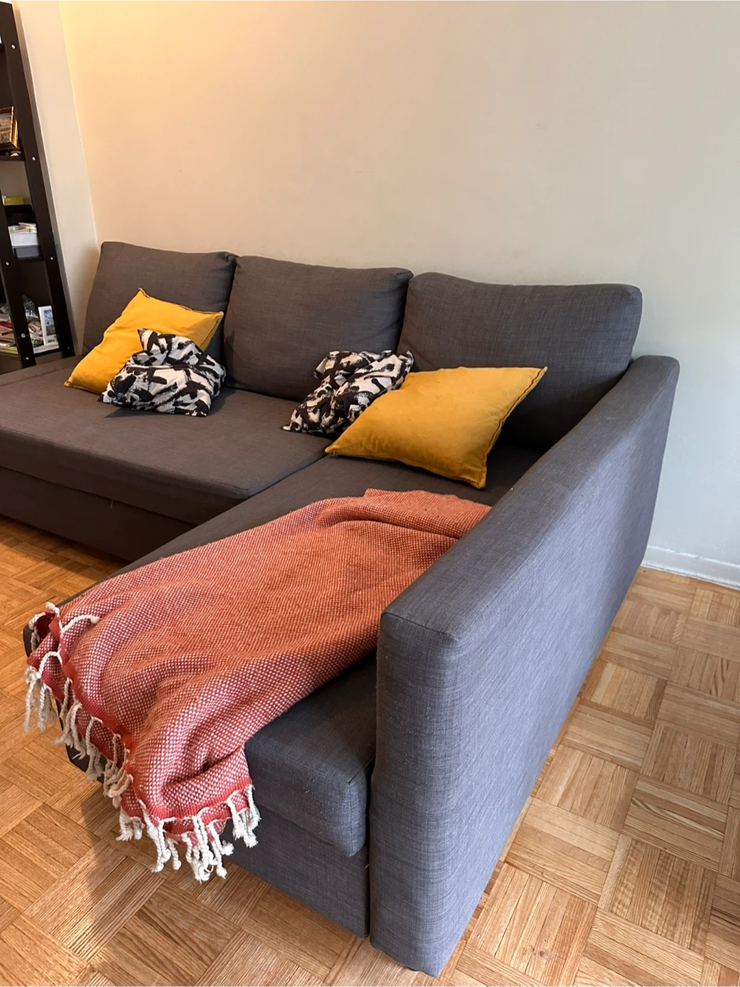 Selling a comfy grey FRIHETEN IKEA sectional sofa! It's in great shape and features a convenient pull-out bed, perfect for guests or extra lounging space. The sectional design makes it a versatile addition to any living room.