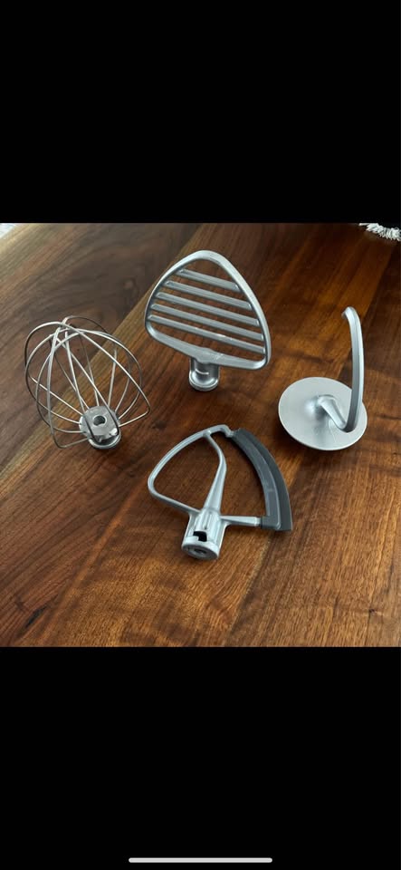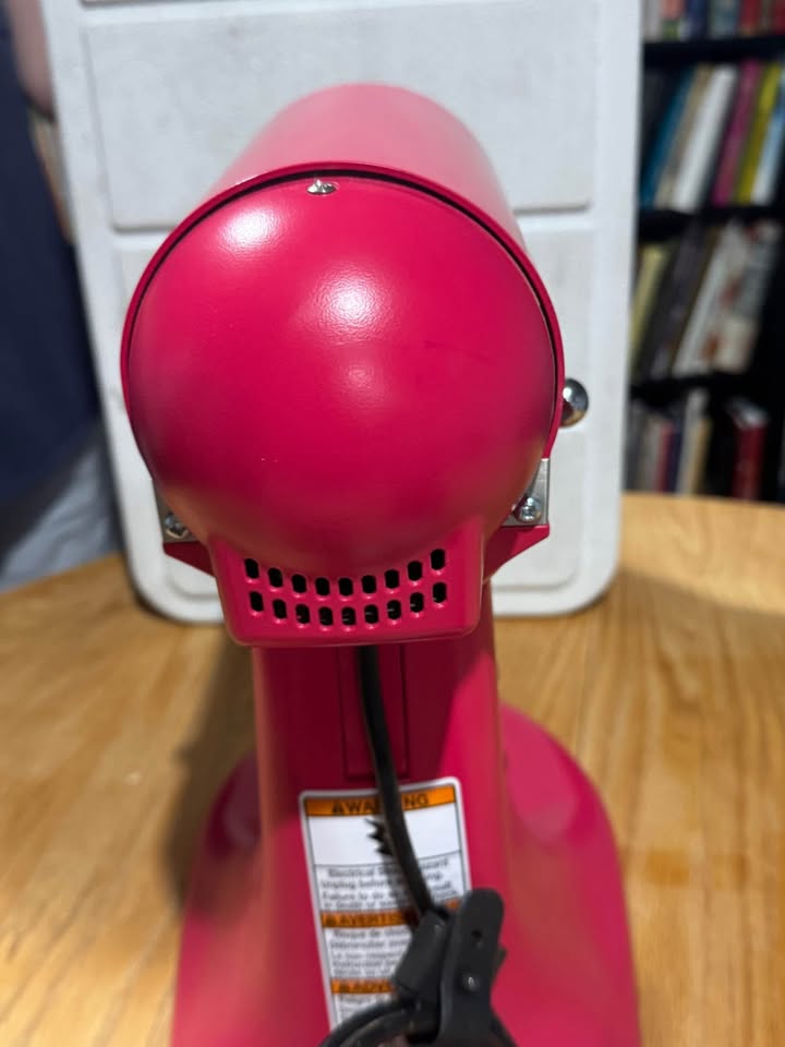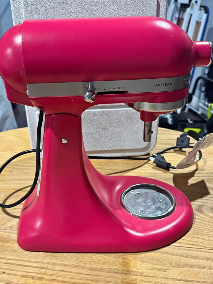 Rarely used kitchen aid stand mixer. Hibiscus colour 2023 colour of the year limited colour. Comes with silver bowl and four paddle attachments.